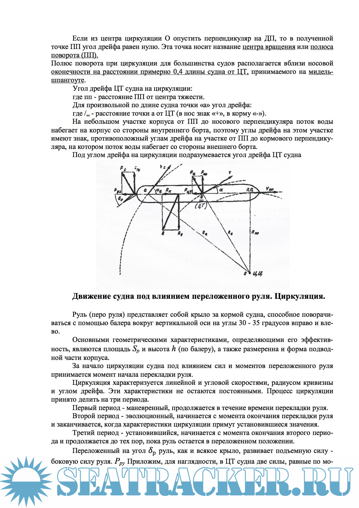 Движение судна под влиянием переложенного руля. Циркуляция