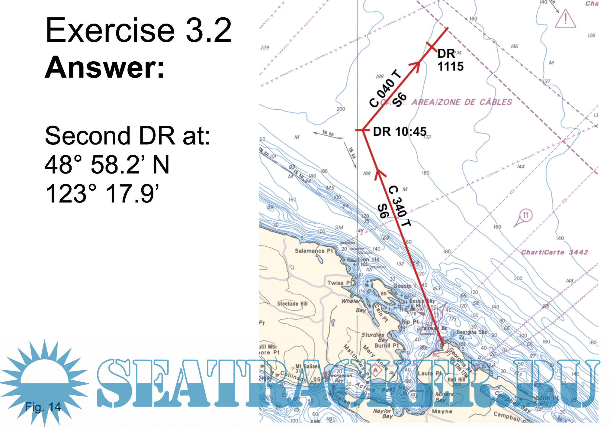 Each session of the PPT presentation offers many exercises, and provides their answers. These exercises, and their answers, are contained in the companion book Coastal Navigation Exercises, together with the required tables.