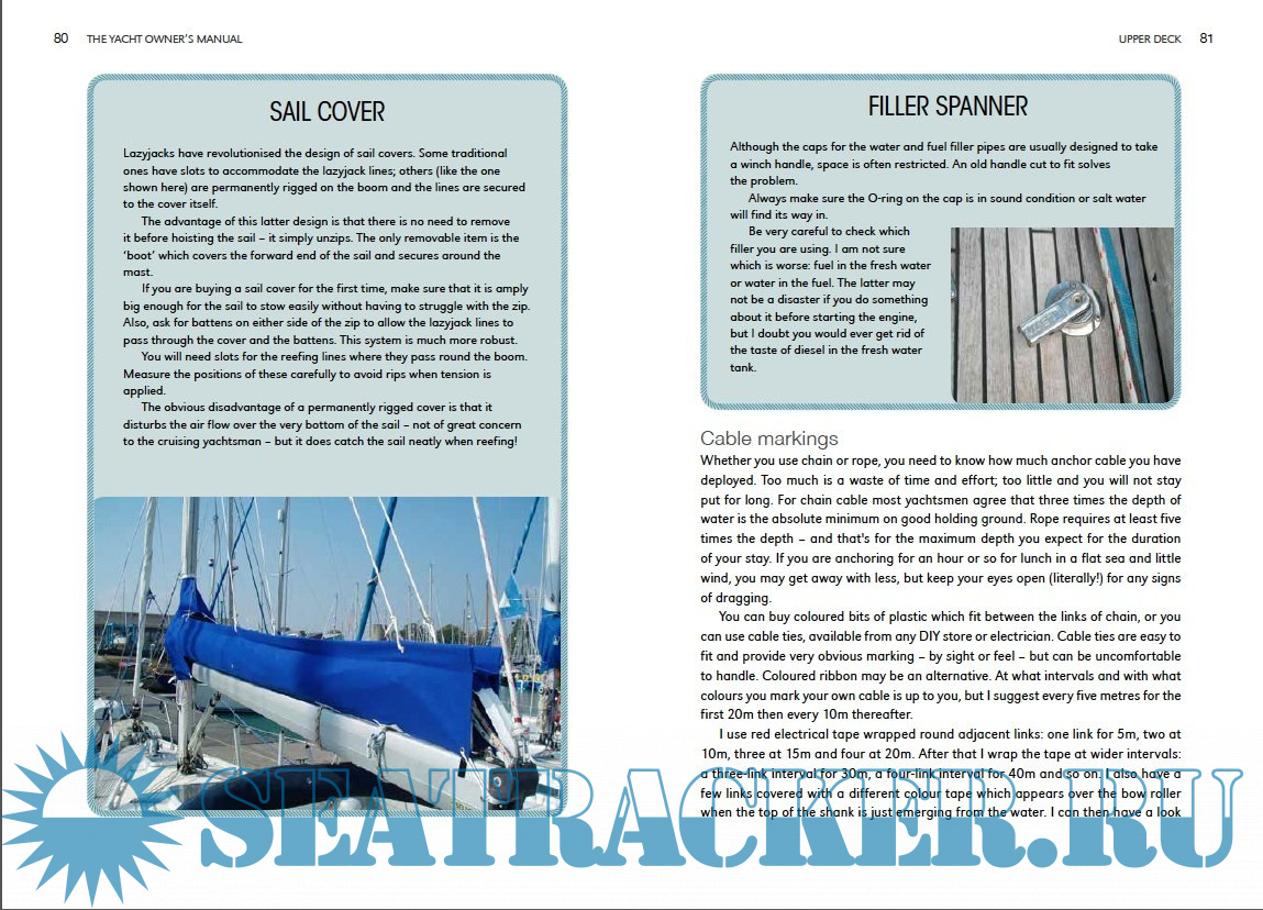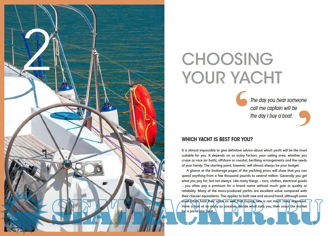Topics covered include: choice of boat; insurance; assessing (and costing) moorings and berths; navigation and safety equipment; domestic equipment (galley, bedding, clothing, etc); navigation (including in fog); manuevering in close spaces; sources of weather information and forecasts; responsibilities towards crew; catering and cooking; maintenance advice (daily tips, winterizing, engine servicing, fitting out for spring, etc.); paperwork (including customs forms); dealing with emergencies; and more.