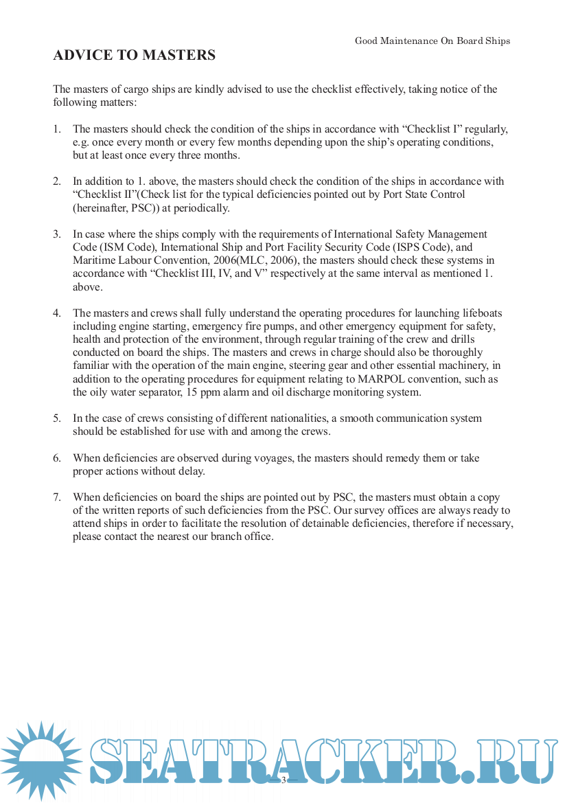 Description: Since the first edition of "Good Maintenance On Board Ships" was published in June 1994 and revised subsequent dates, in order to upgrade the maintenance standards of your ships, many ideas and comment from ship owners and parties concerned have been received.