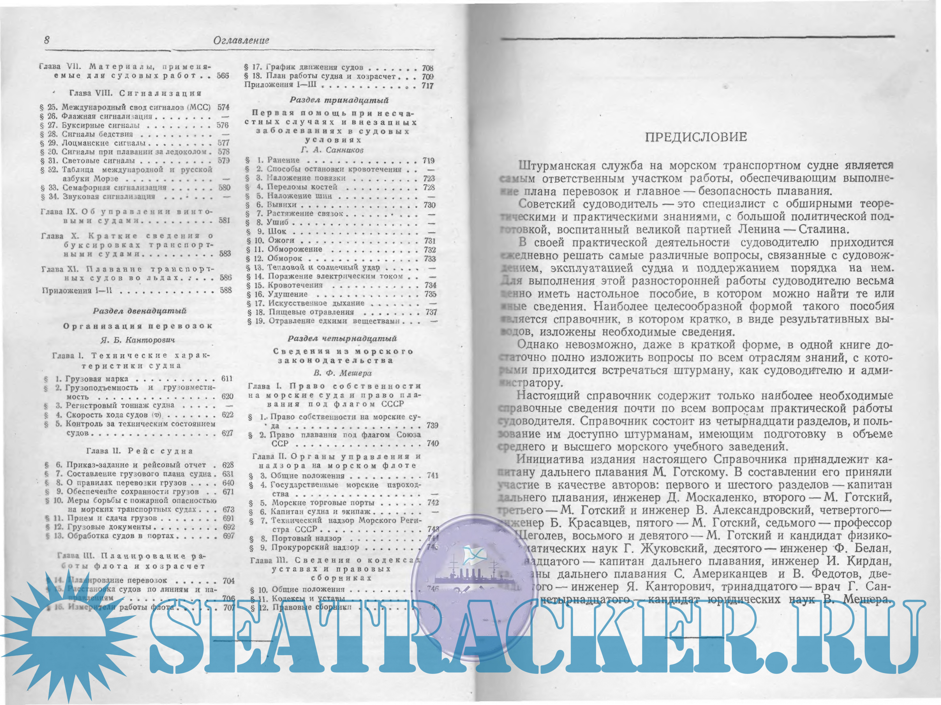 Год выпуска: 1951 Язык: русский Автор: Коллектив авторов Формат: DjVu Качество: Отсканированные страницы Количество страниц: 750 Описание: В своей практической деятельности судоводителю приходится ежедневно решать самые различные вопросы, связанные с судовождением, эксплуатацией судна и поддержанием порядка на нем. Для выполнения этой разносторонней работы судоводителю весьма ценно иметь настольное пособие, в котором можно найти те или иные сведения. Наиболее целесообразной формой такого пособия является справочник, в котором кратко, в виде результативных выводов, изложены необходимые сведения. Настоящий справочник содержит только наиболее необходимые справочные сведения почти по всем вопросам практической работы судоводителя. Справочник состоит из четырнадцати разделов, и пользование им доступно штурманам, имеющим подготовку в объеме среднего и высшего морского учебного заведения.