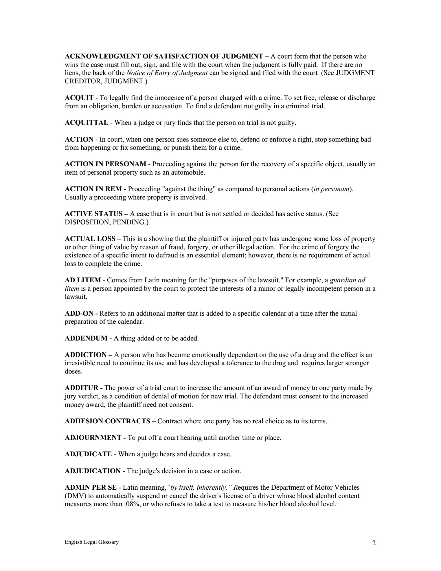 Legal Glossary. This glossary is to be used for general reference purposes only, should be considered a "workin-