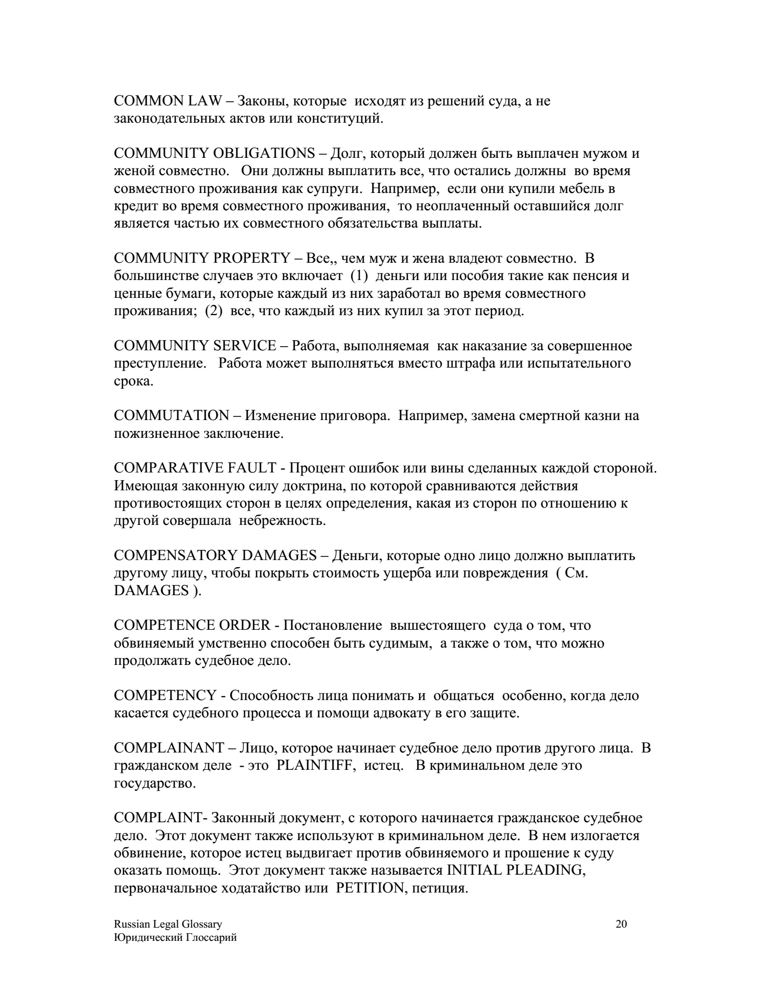English/Russian Legal Glossary Юридический Глоссарий