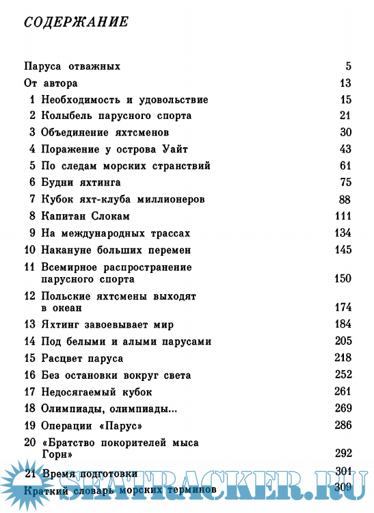 Автор — известный польский спортсмен, яхтенный капитан дальнего плавания, посвятивший много лет исследованию материалов по международному парусному спорту.