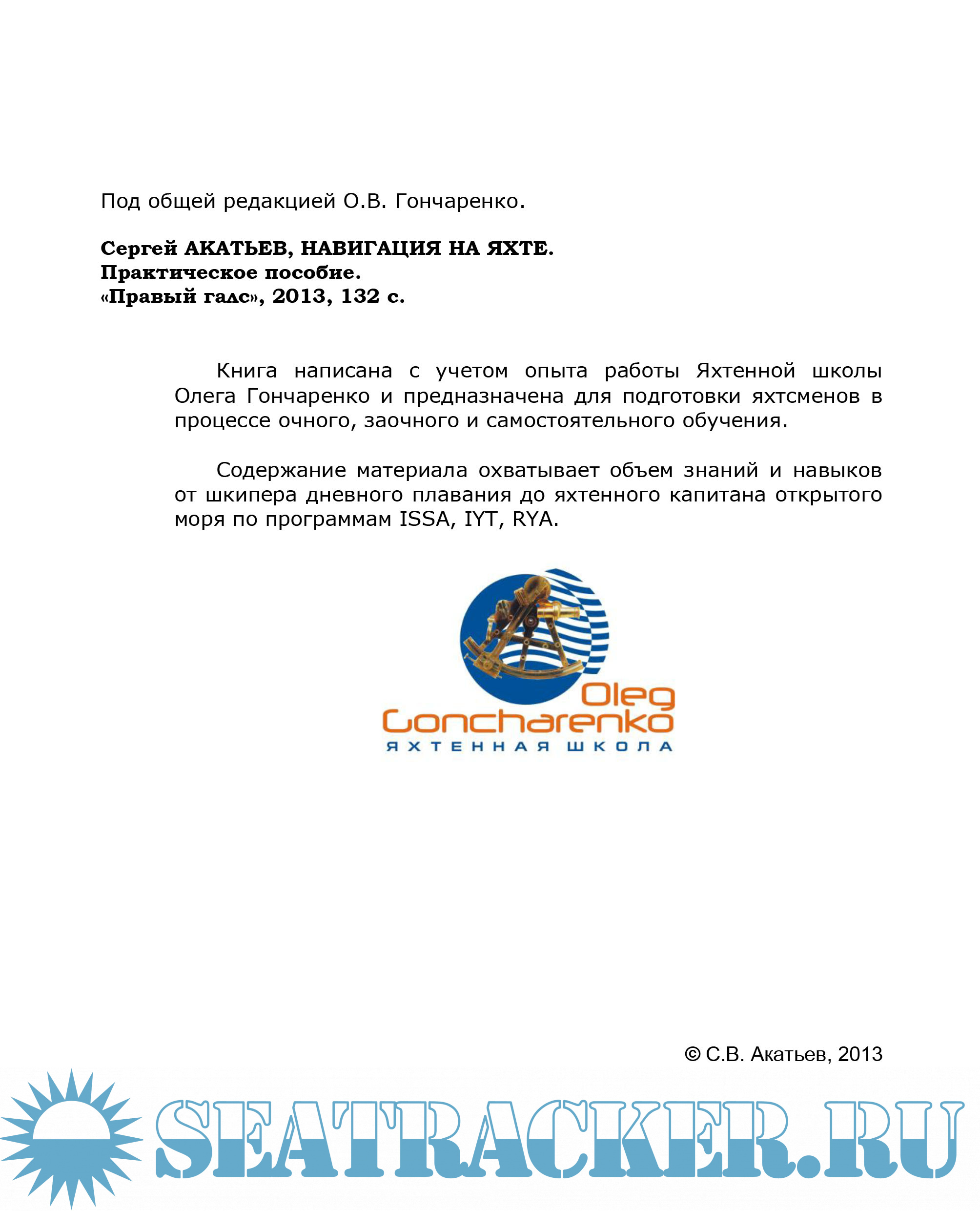 Описание: Книга написана с учетом опыта работы Яхтенной школы Олега Гончаренко и предназначена для подготовки яхтсменов в процессе очного, заочного и самостоятельного обучения.