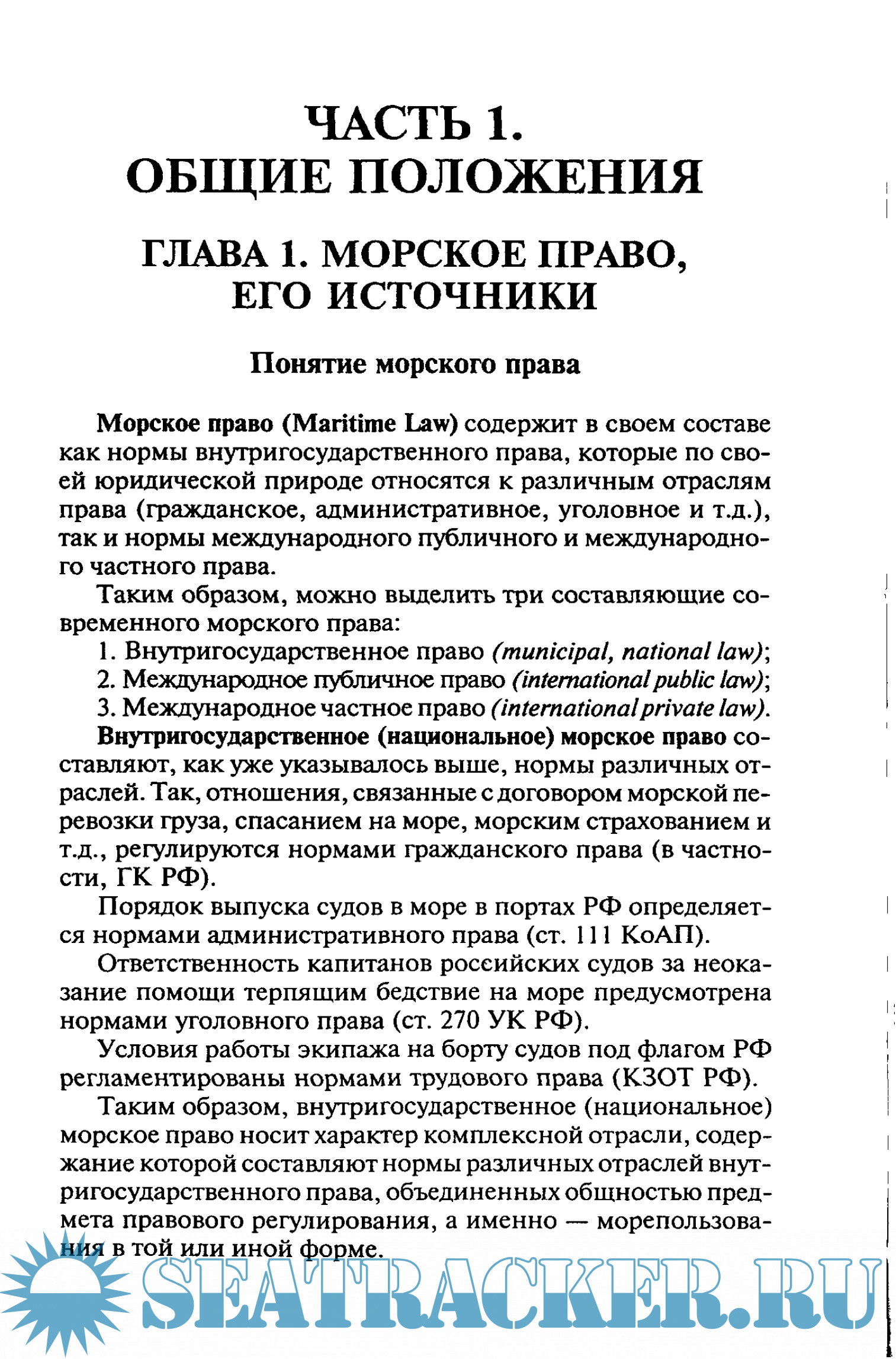 Со времени выхода в свет в 1985 году учебников «Советское морское право» (под ред. В.Ф. Мешеры) и «Морское право (Ф.С.Бойцов, Г.Г.Иванов, А.Л. Маковский), в нашей стране произошли существенные изменения. Распад СССР, появление на международной арене Российской Федерации как государства-продолжателя, возникновение Содружества Независимых Государств, развитие российского морс¬кого законодательства, имея в виду, прежде всего, принятие Кодекса торгового мореплавания РФ 1999 г., присоединение России к ряду международных конвенций, включая Конвенцию ООН по морскому праву 1982 г., с вступлением в силу которой существенным образом изменился правовой режим Мирового океана в целом, и международного судоходства, в частности, — эти и другие сопутствующие факторы привели к необходимости подготовки курса по морскому праву, соответствующего сегодняшним реалиям.Из работ по указанной тематике, изданных в последние годы, можно указать работу А.П. Мовчана «Международное морское право» (1998 г.). Однако следует указать на ее весьма сжатый объем, причем в рамках исключительно международного публичного морского права.