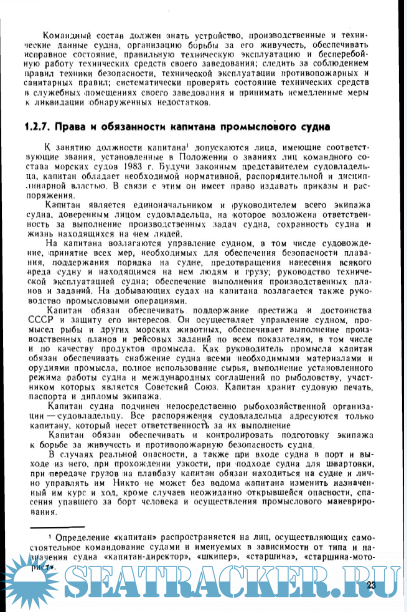 Описание: Даны основные сведения по морскому и рыболовному праву, навигации, лоции, мореходной астрономии. Приведены способы определения судна в море, в том числе спутниковых РНС. Рассмотрены основные мореходные качества промысловых судов. устройство орудий лова и их ремонт на судне, вопросы управления судном в сложных условиях и на промысле. Описаны способы промышленного рыболовства и безотходная технология обработки рыбы на судах. Рассмотрены вопросы организации и планирования работы промысловых судов, охраны морской среды от загрязнения с судов.