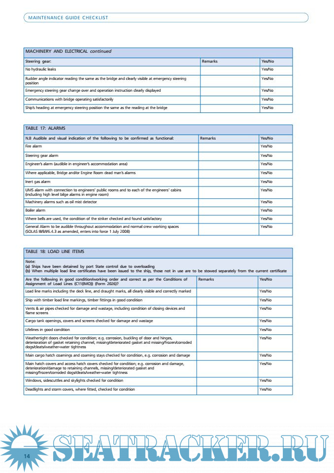 Description: This list is provided to owners for guidance purposes only and is intended to supplement the owners own operation and maintenance procedures. The list has been compiled from analysis of port State control reported deficiencies.
