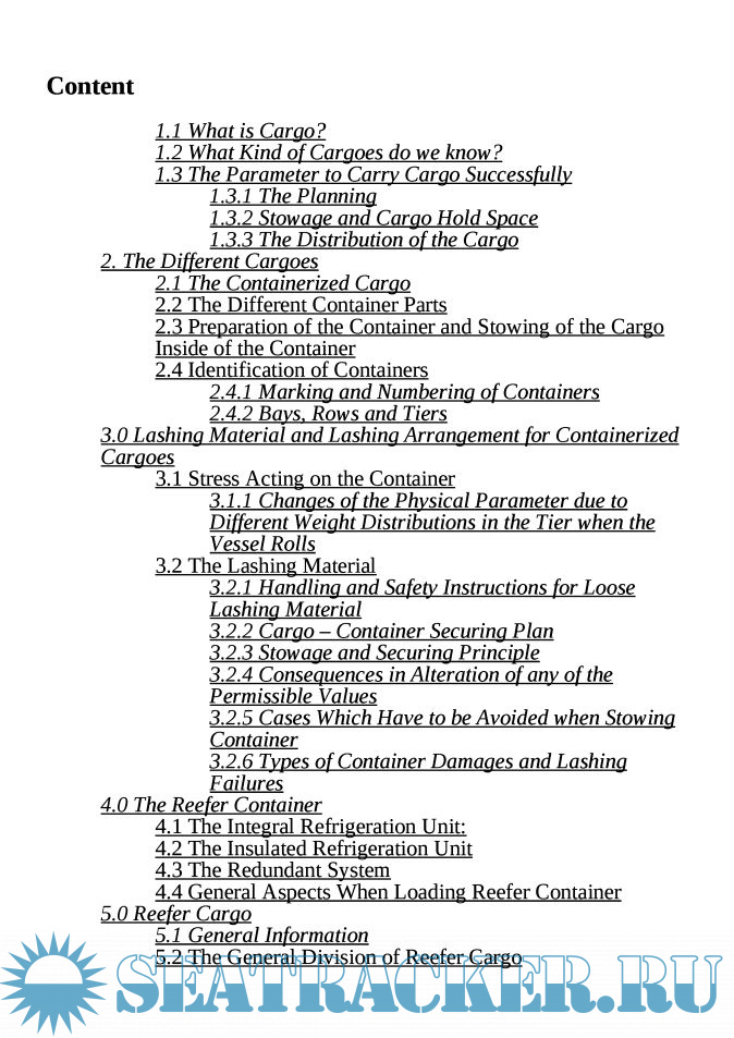 Description: A Guide for Loading, Handling, Stowage, Securing, and Transportation of Different Types of Cargoes, Except Liquid Cargoes and Gas. The most common cargoes and their stowage and calculation are described - Container Cargoes, Reefer Cargoes, Bulk Cargoes including Grain and Grain products, Heavy Lift Cargoes, Timber Cargoes, Steel Cargoes and Ro-Ro Cargoes. For each cargo the stowage and loading principles are described as well as the securing of these cargoes which includes all necessary calculations.