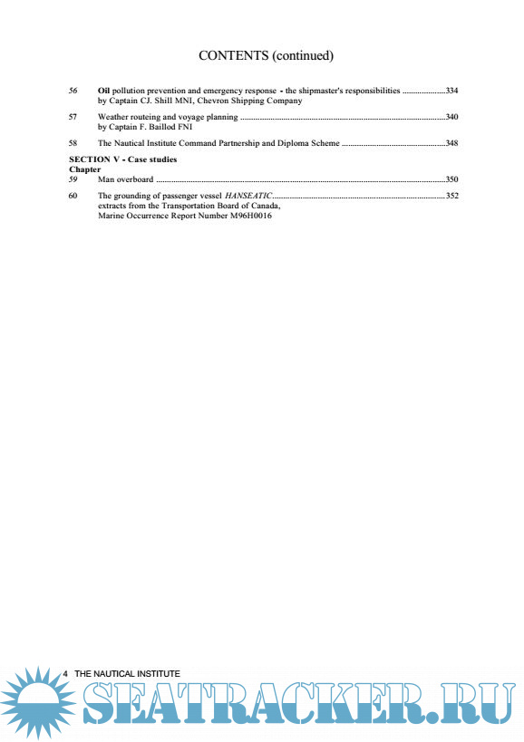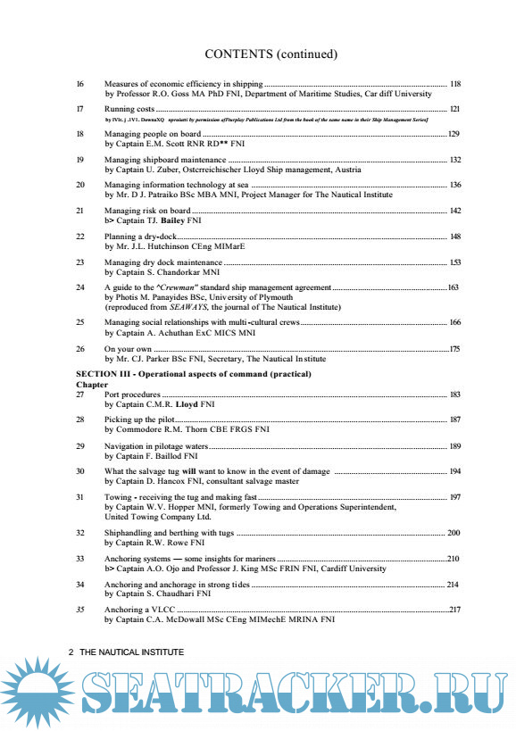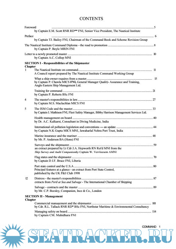 Year: 2000 Language: english Author: The Nautical Institute Genre: Guide Publisher: O'Sullivan Printing Corporation Edition: Second ISBN: 1-870077-55-5 Format: PDF Quality: eBook Pages count: 367 Description: SHIPMASTERS today and those IN COMMAND 0f naval vessels have unique authority which is different to that of the factory manager or civil servant. Ships, although under the jurisdiction of the Flag State, are treated in law as independent 'out-posts'. The master and commanding officer are expected to uphold the general rule of law and to ensure the safety of the crew and the ship using their best judgement. Command, like all other aspects of management, is changing. Being a good chief navigator is essential but it is not enough. Shipmasters have to be able to contribute to the success of their companies and it is with this in mind that The Nautical Institute has developed the Command Partnership Programme and revised this book on Command. The Nautical Institute has taken the view that shipmasters want standards to improve. The command book and scheme is the Nautical Institute's contribution to providing international industry-wide support to future captains.