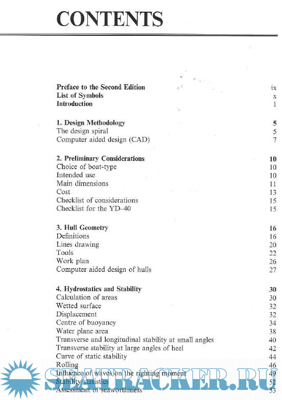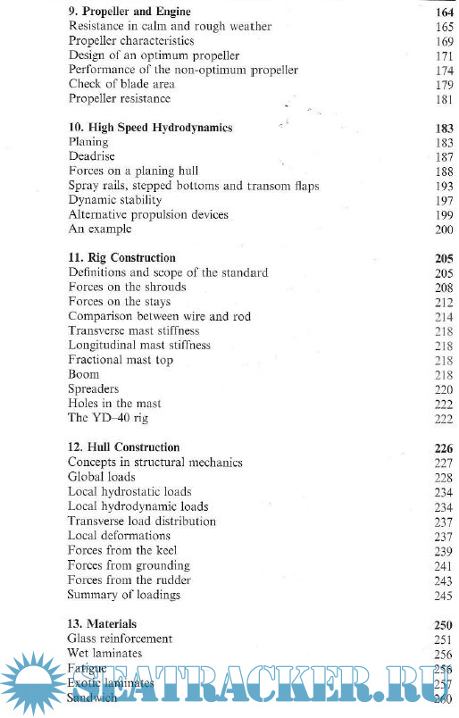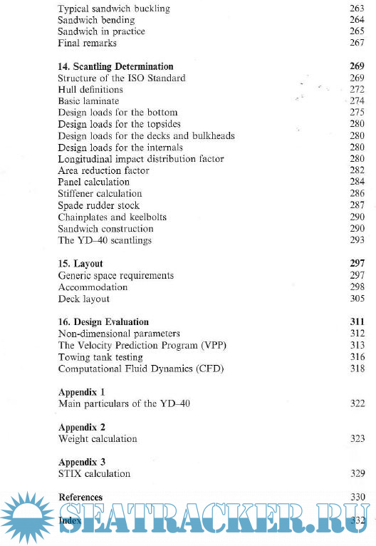 1. Design Methodology 5 2. Preliminary Considerations 10 3. Hull Geometry 16 4. Hydrostatics and Stability 30 5. Hull Design 56 6. Keel and Rudder Design 96 7. Sail and Rig Design 132 8. Balance 155 9. Propeller and Engine 164 10. High Speed Hydrodynamics 183 11. Rig Construction 205 12. Hull Construction 226 13. Materials 250 14. Scantling Determination 269 15. Layout 297 16. Design Evaluation 311 Appendix 1 322 Appendix 2 323 Appendix 3 329 References 330 Index 332