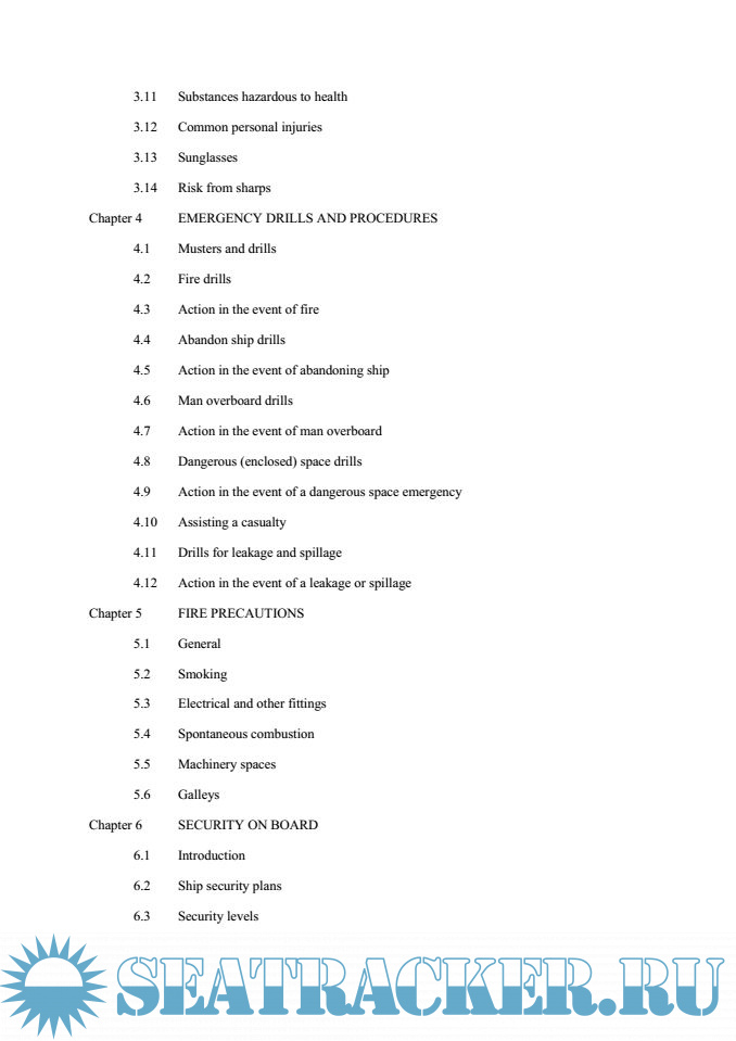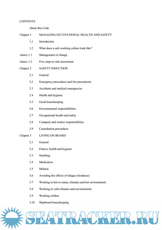 Description: This Code is published by the MCA and endorsed by the National Maritime Occupational Health and Safety Committee, UK Chamber of Shipping, Nautilus International and the National Union of Rail, Maritime and Transport Workers as best practice guidance for improving health and safety on board ship. It is intended primary for merchant seafarers on UK-registerd ships, but very useful for ships of all other nations.The Code is addressed to everyone on a ship regardless of rank or rating, and to those responsible for safety, because the recommendations can be effective only if they are understood by all and if everyone cooperates in their implementation.