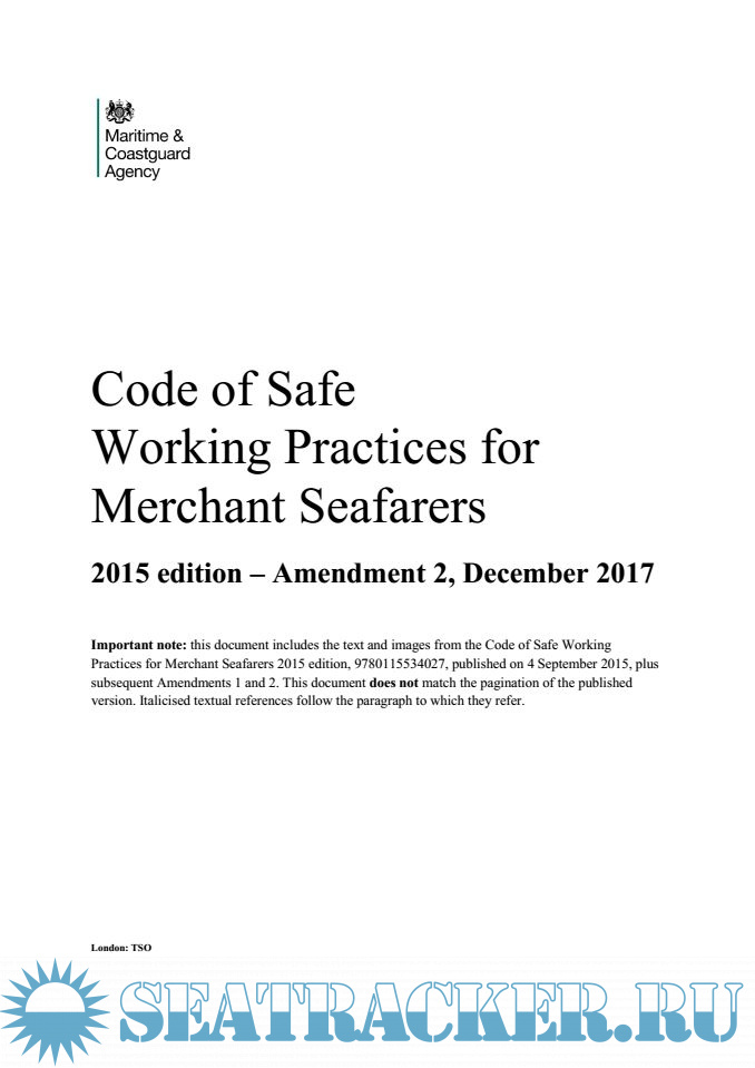 This document includes the text and images from the code of safe working practices for merchant seafarers 2015 edition, 9780115534027, published on 4 September 2015, plus subsequent amendments 1 and 2.