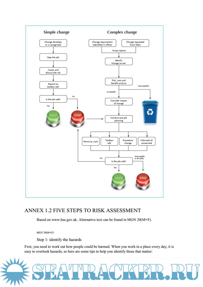 Year: 2018 Language: english Author: MCA Genre: Convention (rules) Publisher: MCA Edition: Dec.2017 Format: PDF Quality: eBook Pages count: 523 Description: This Code is published by the MCA and endorsed by the National Maritime Occupational Health and Safety Committee, UK Chamber of Shipping, Nautilus International and the National Union of Rail, Maritime and Transport Workers as best practice guidance for improving health and safety on board ship. It is intended primary for merchant seafarers on UK-registerd ships, but very useful for ships of all other nations.The Code is addressed to everyone on a ship regardless of rank or rating, and to those responsible for safety, because the recommendations can be effective only if they are understood by all and if everyone cooperates in their implementation. This document includes the text and images from the code of safe working practices for merchant seafarers 2015 edition, 9780115534027, published on 4 September 2015, plus subsequent amendments 1 and 2. Additional info: Published 3 January 2018