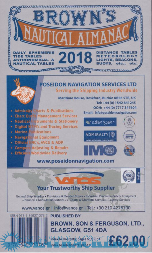 Brown's Nautical Almanac 2018 contains a full nautical almanac for sun, moon, stars and planets for 2018. Also included: