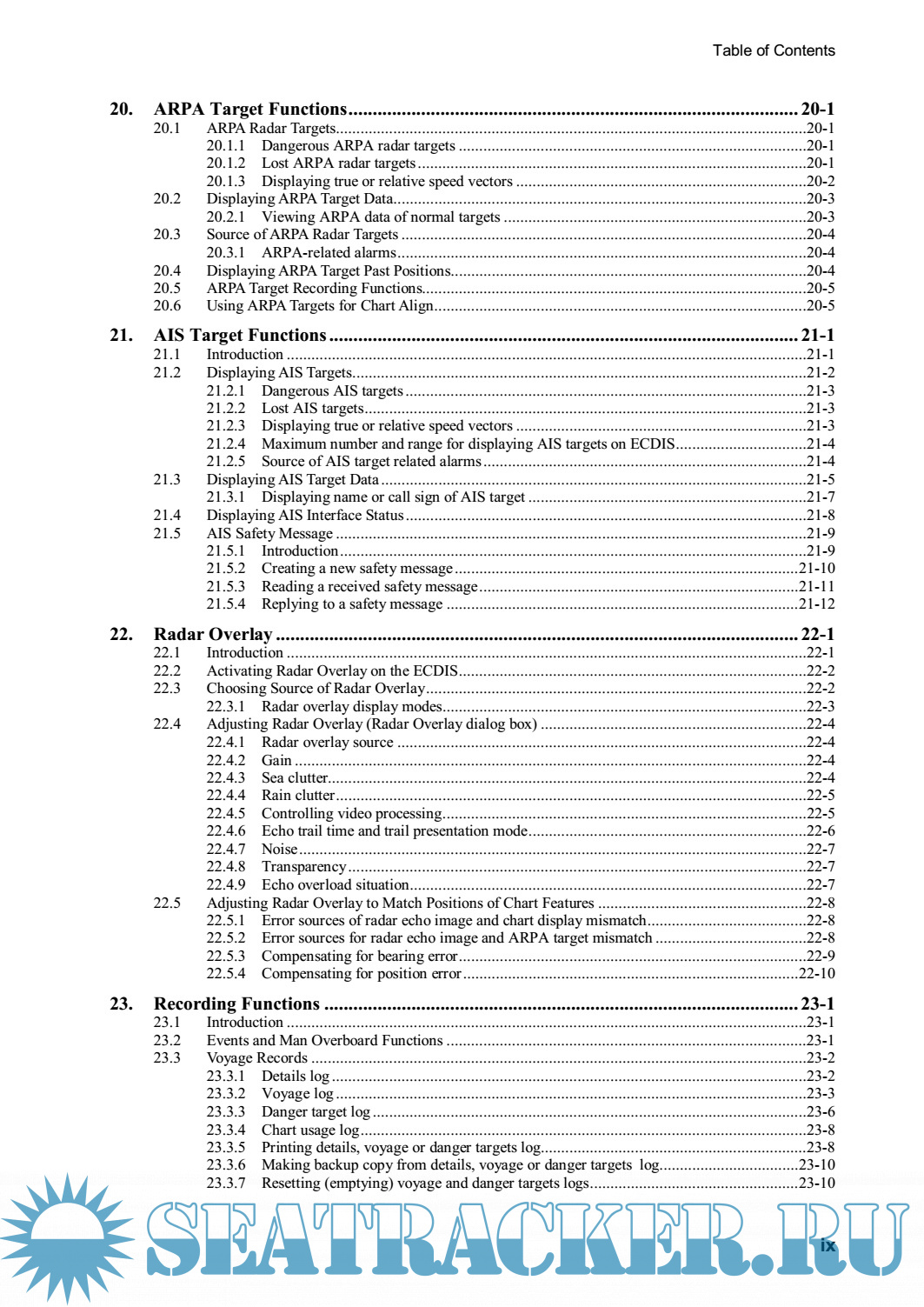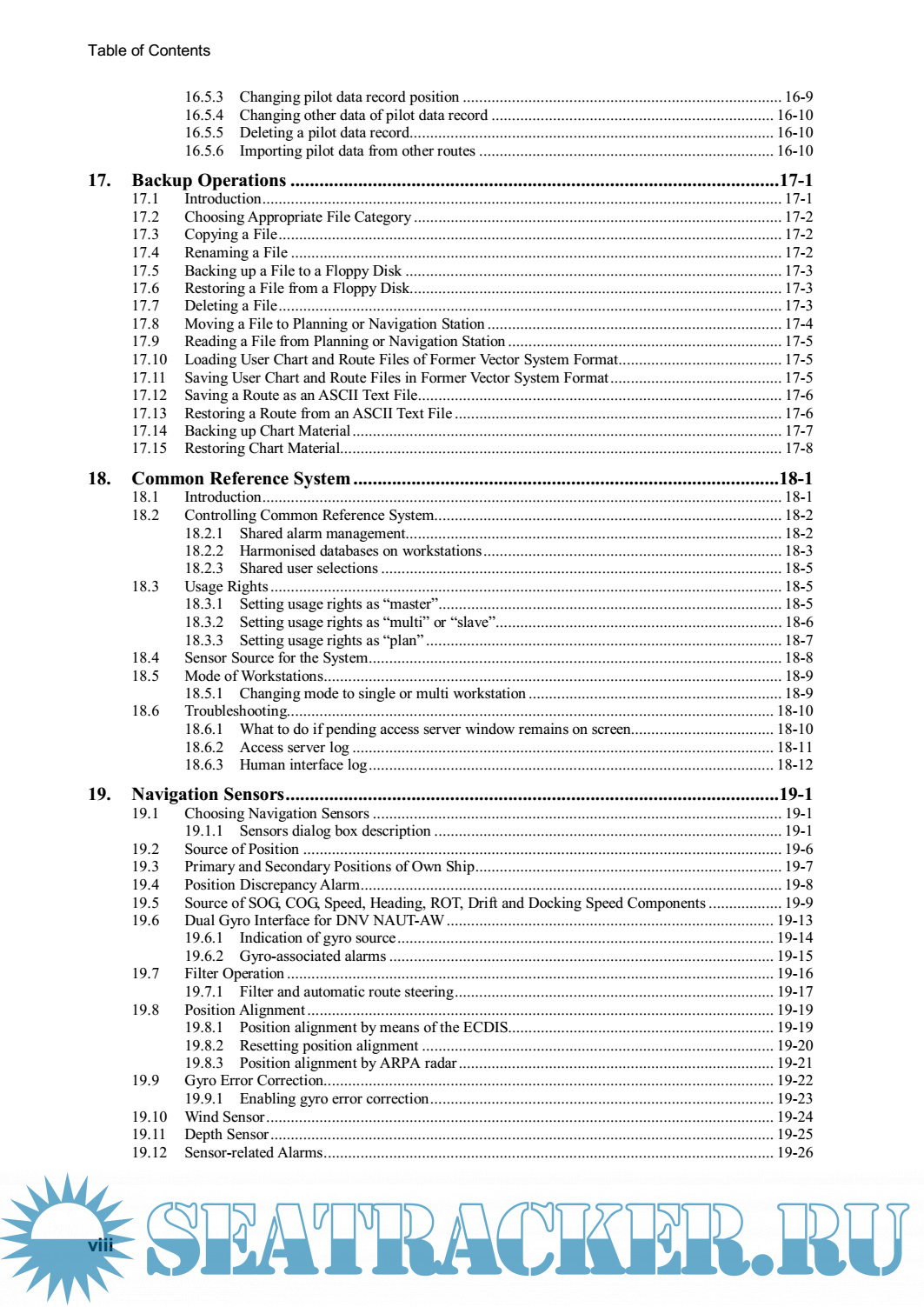 Year: 2005 Language: english Author: Furuno Genre: Manual Publisher: Furuno Edition: B1 Format: PDF Quality: eBook Pages count: 602 Description: The FEA-2x07 series ECDIS is the product of FURUNO’s extensive experience in computer technology and marine electronics. It complies with IMO Resolution A.817(19), IEC 61174 and other related standards. The ECDIS displays electronic charts, nav lines, ARPA data, AIS targets and other navigation data on a high-resolution 20.1- inch (FEA-2107) or 23.1-inch display (FEA-2807). The FEA-2107-BB is supplied without a monitor, permitting use of the commercial monitor of your choice. The main features of the ECDIS are • Continuous monitoring of ship’s position through multi-sensor Kalman filter processing using GPS, DPGS, SDME • Route planning and route monitoring facilities • Wide variety of warning facilities contribute to safer and more efficient navigation • Radar image may be superimposed on electronic charts (option) • Grounding warnings, safe depth contours • Chart database loaded and updated using CD ROMs • Target data from ARPA/radar and AIS transponder to aid collision avoidance. (AIS transponder and ARPA)