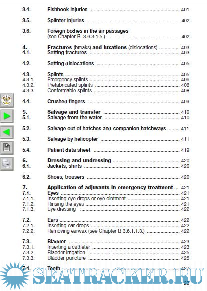 Description: This instruction book provides captains and ship's officers with a manual with which, after the appropriate medical training, they will be placed in the position of being able to implement health protection on board, prevent health hazards recognize and treat illnesses, help with urgent emergencies, with doctor's advice via the radio when required, according to the specific shipping conditions.