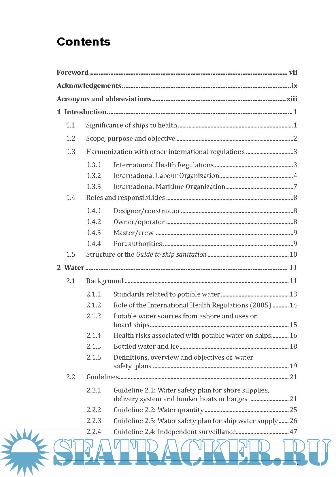 1.5 Structure of the Guide to ship sanitation........................................................10