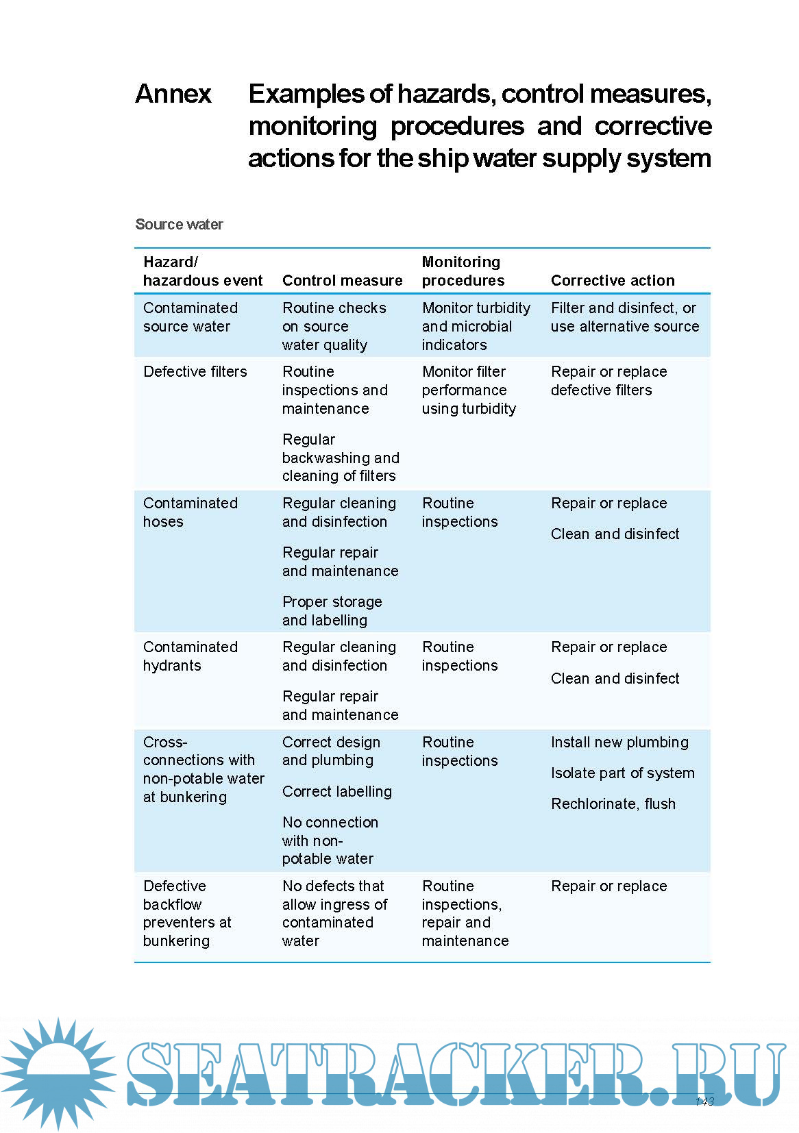 procedures and corrective actions for the ship water