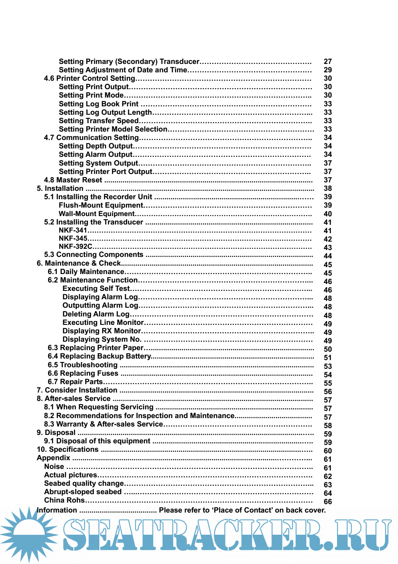 Year: 2012 Language: english Author: JRC Genre: Manual Publisher: JRC Edition: 5 Format: PDF Quality: eBook Pages count: 80 Description: The JFE-680 Echo-Sounder consists of a transducer mounted on the bottom of the ship's hull and a main unit that displays information on the depth and formation of the seabed. This information is gained by using ultrasonic waves sent from the transducer that are then reflected off the sea bottom and picked up again by the transducer. The JFE-680 also has the following functions: (1) depth alarm, (2) power fail alarm, (3) output of depth data, (4) output of depth and power fail alarms. Features The JFE-680 features the following: • Three display modes; standard, history, and docking. • Depth data for last 24 hours in memory to play back the past sounding information. • Dual frequency mode and two transducers are available in option. (*requires an optional equipment)