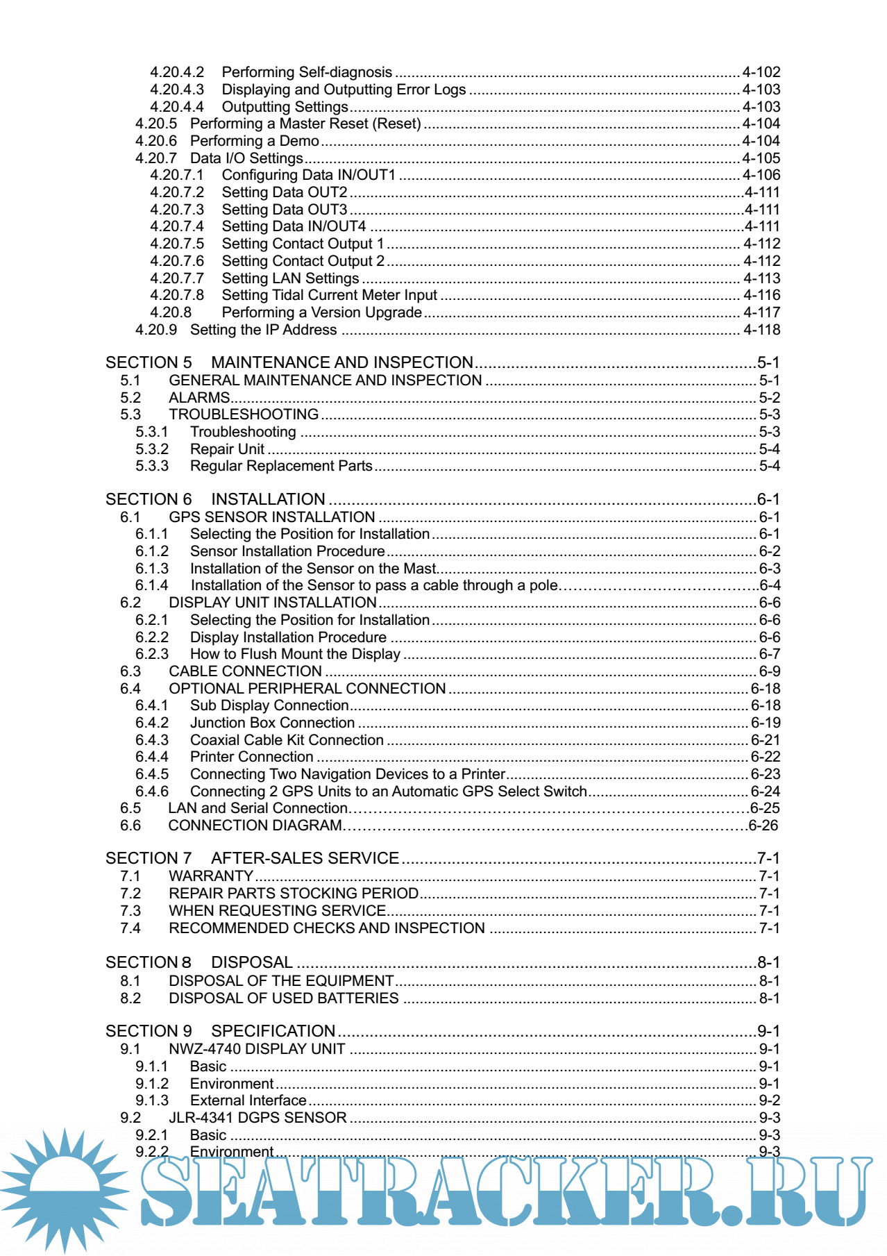 Year: 2009 Language: english Author: JRC Genre: Manual Publisher: JRC Edition: 1 Format: PDF Quality: eBook Pages count: 216 Description: This equipment (JLR-7800/JLR-7500) is a GPS navigator with a JLR-4341 DGPS or JLR-4340 GPS sensor being connected to the NWZ-4740 display unit. The GPS navigator operates around-the-clock to measure the position with high accuracy anywhere in the world and in all weather conditions. In addition, the GPS navigator can increase the accuracy of position fixing by receiving correction data from the DGPS beacon station and SBAS satellites. Features * Registration of up to 100 routes and 10000 waypoints * Availability of four output ports * Sharing of a route with the ECDIS by installing a LAN * High visibility 5.7-inch FSTN LCD * Installation of multiple graphic display modes * Mutual acknowledgment through the contact or ALR * Improvement of operability by using various menus * Built-in SBAS function * Built-in RAIM functio