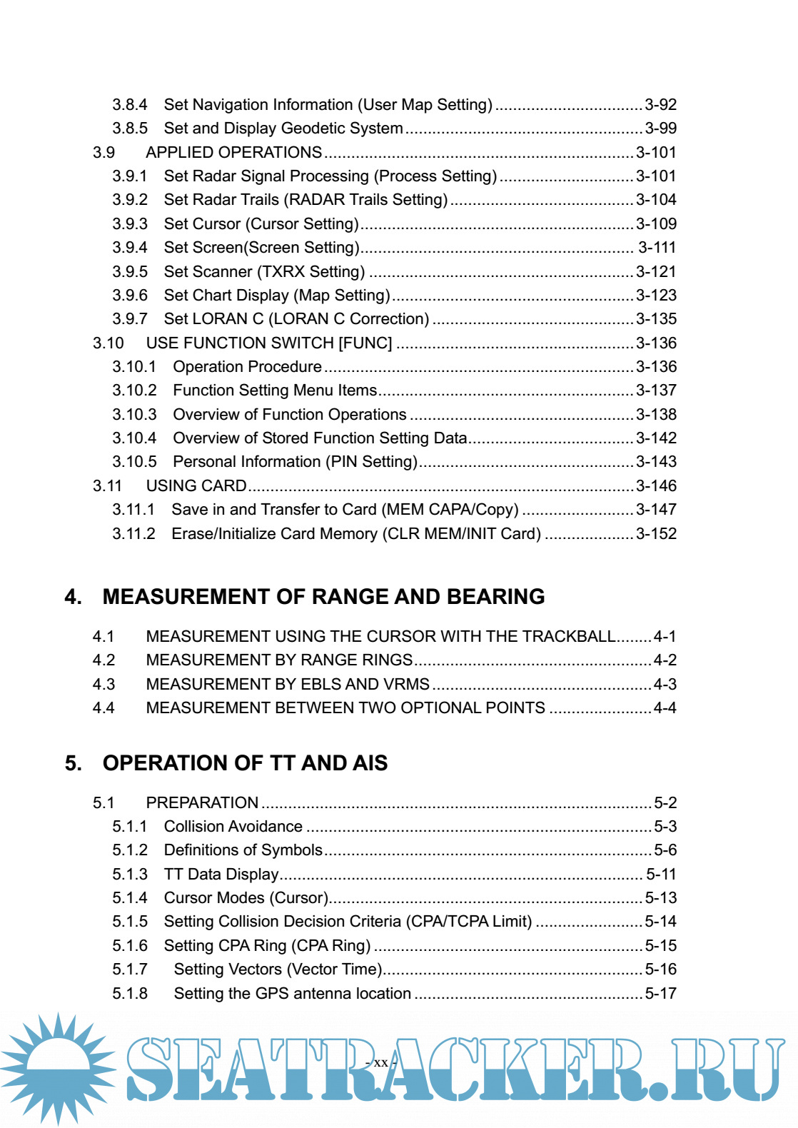 • TT functions (manual/automatic, target acquisition and tracking, vector and trail displays and alarm