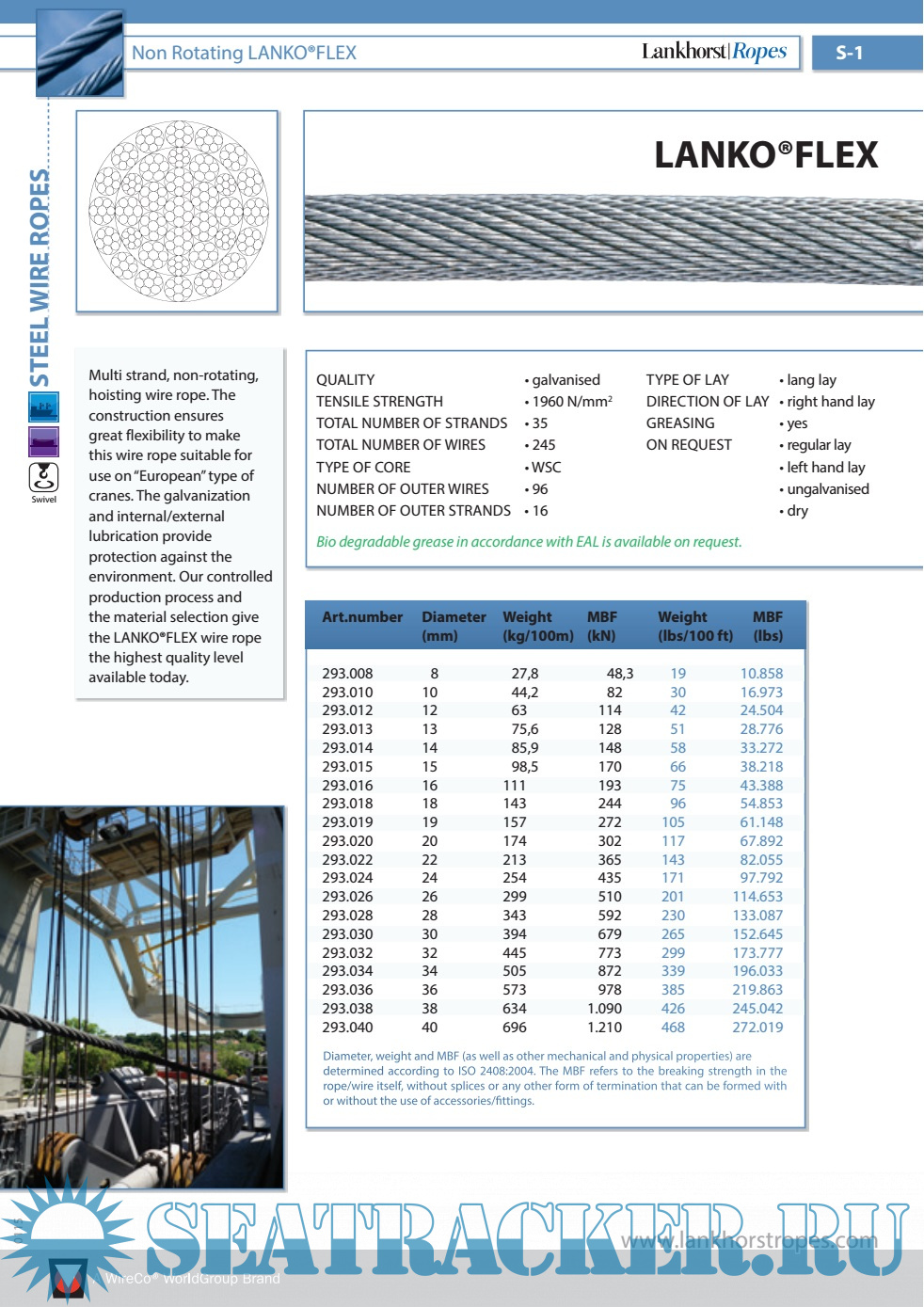 Description: Lankhorst Ropes combine more than two centuries of experience with a strong innovative ability and modern production techniques. In close cooperation with clients world-wide, the company develops innovative solutions for specific applications. These solutions can be either new products or optimised existing techniques. In this manner Lankhorst Ropes has been a market leader for decades in the introduction of new, synthetic fibres, starting with polyamide, polyester, polyethylene and polypropylene, later followed by HMPE, aramid and the in-house developed Tipto® range. Lankhorst focuses especially on specialized fibre ropes and steelwire ropes, with added value with regards to breaking strength, life-time, safety and user friendliness.