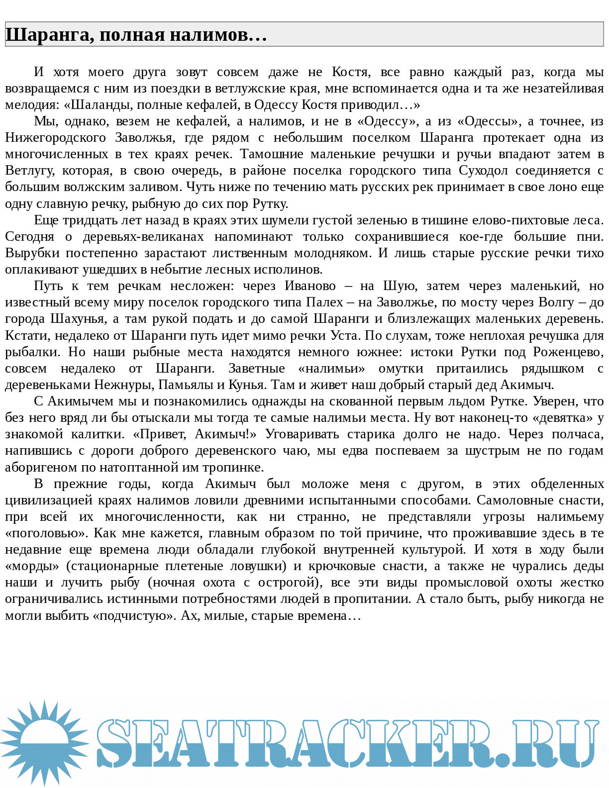 характеристики снастей, нюансы рыболовных сезонов, рыболовные маршруты, кулинарные
