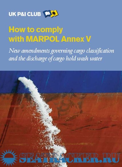 Year: 2013 Language: english Author: Dr Rebecca Coward Genre: Руководство Publisher: UK P&I CLUB Format: PDF Quality: eBook Number of pages: 14 Description: As of 1 January 2013, amendments to MARPOL Annex V1,2, mean that shippers have new responsibilities regarding cargo classification (crew responsibilities are outlined separately in the enclosed poster) which also affect the ability of the crew to discharge residues and wash water into the marine environment. From this date shippers will need to consider whether or not the cargo and hence residues, including those contained in wash water are ‘harmful to the marine environment’ (HME), as illustrated in Figure 1. This booklet sets out the requirements as well as the concept and process of classification of cargoes as HME.