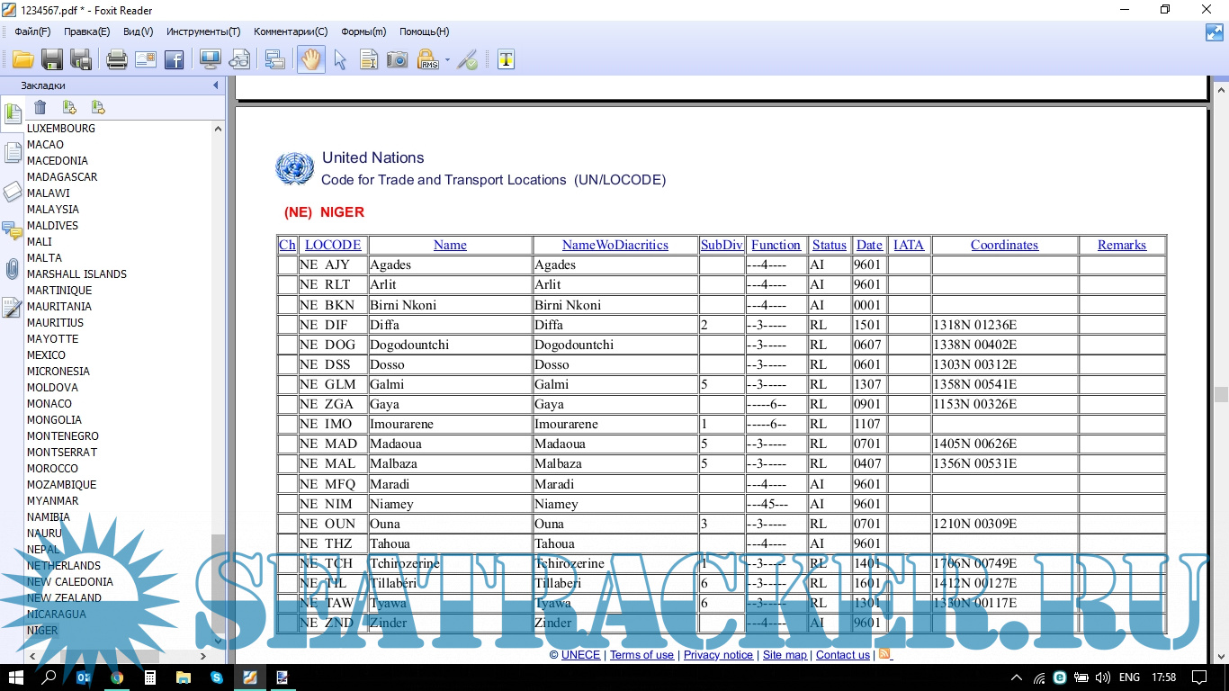 Description: UN/LOCODE стран и городов