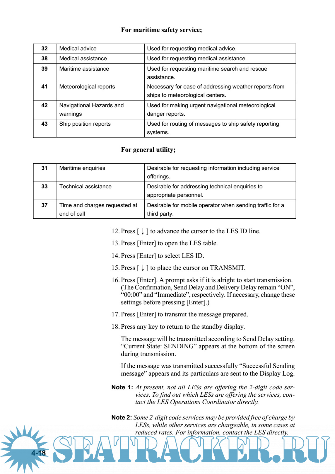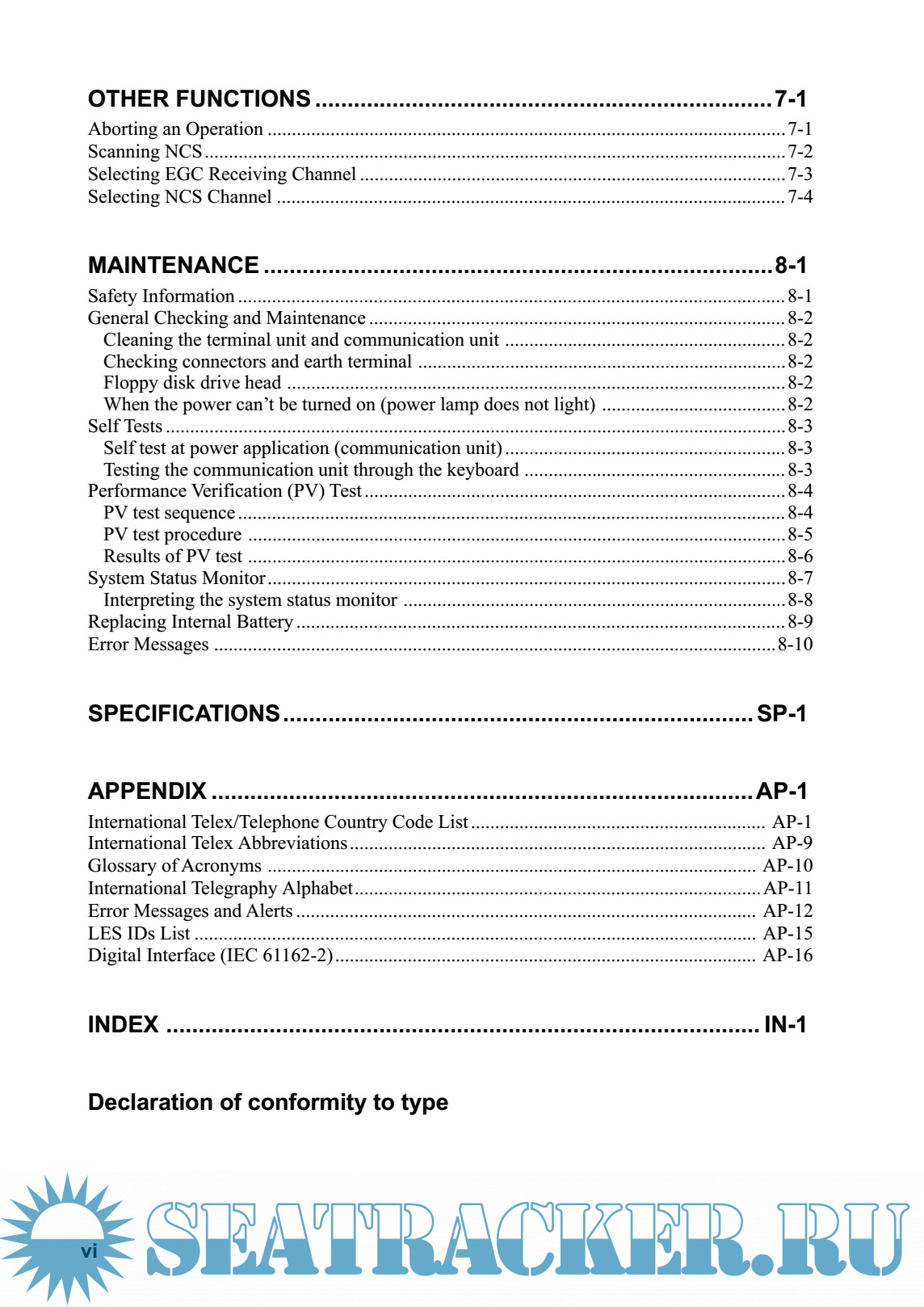 Year: 2003 Language: english Author: Furuno Genre: Manual Publisher: Furuno Edition: M2 Format: PDF Quality: eBook Pages count: 182 Description: FELCOM 12 provides the full range of distress and general communication services for mobile and fixed terrestrial subscribers in the Inmarsat-C communication network. Its compact size permits installation where space is limited. Features - Conforms to the following standards: IMO A.807(19), MSC. 68(68), Annex 4, IMO A.694(17), IEC 61097-4 (1994), IEC 60945 (1996), IEC 61162-1 (2000) - E-mail facility To transmit E-mail, register with the LES provider. E-mail charges are calculated separately. - Built in Enhanced Group Call (EGC) receiver permits operation as EGC-only receiver. - Communication unit accepts a wide variety of peripheral equipment, Distress Message Controller (DMC), personal computer and remote panel. - Connection of 2nd Data Terminating Equipment (DTE) for operation from remote location such as the bridge - Store-and-forward telex communication (public telex network) - Data reporting and Polling - Internal GPS receiver (option) in the communication unit provides GPS-generated position. - Self test programs for maintenance - Terminal unit provides floppy disk drive for unlimited storage of received and transmitted messages on floppy disks. - Menu driven operation