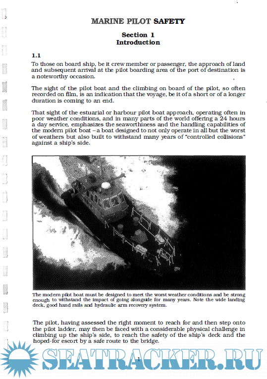Year: 1995 Language: english Author: The Nautical Institute Genre: Handbook Publisher: The Nautical Institute ISBN: 1 87007731 8 Format: PDF Quality: Scanned pages Pages count: 68 Description: Introduction To those on board ship, be it crew member or passenger, the approach of land and subsequent arrival at the pilot boarding area of the port of destination is a noteworthy occasion. The sight of the pilot boat and the climbing on board of the pilot, so often recorded on film, is an indication that the voyage, be it of a short or of a longer duration is coming to an end. That sight of the estuarial or harbour pilot boat approach, operating often in poor weather conditions, and in many parts of the world offering a 24 hours a day service, emphasizes the seaworthiness and the handling capabilities of the modern pilot boat - a boat designed to not only operate in all but the worst of weathers but also built to withstand many years of “controlled collisions" against a ship’s side. The pilot, having assessed the right moment to reach for and then step onto the pilot ladder, may then be faced with a considerable physical challenge in climbing up the ship’s side, to reach the safety of the ship’s deck and the hoped-for escort by a safe route to the bridge.