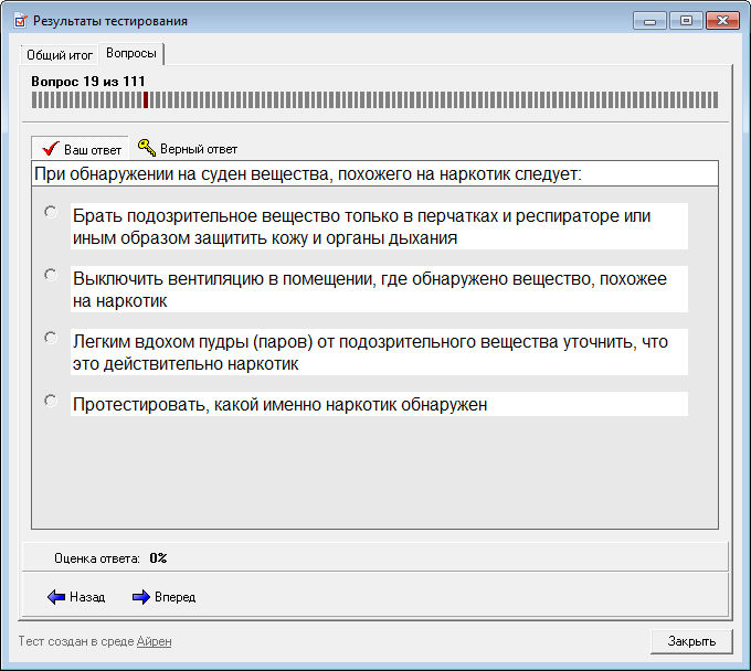 После прохождения теста можно сравнить свои ответы с правильными ответами.