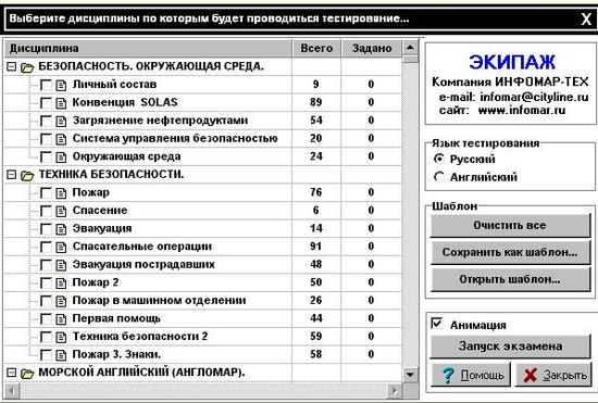 ВОЗМОЖНОСТИ МПК ЭКИПАЖ 2002 содержит порядка 5000 вопросов по различным морским специальностям (судоводитель, судомеханик и др.), по 68 морским дисциплинам. Все вопросы сопровождаются иллюстрациями