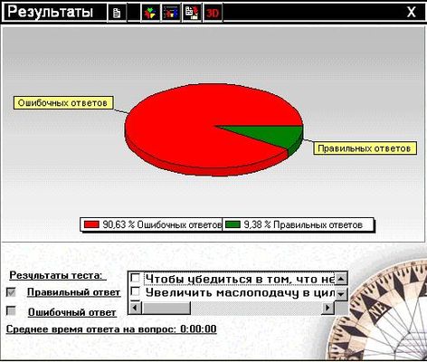 В режиме обучения по окончании ответа на каждый вопрос следует подсказка с правильным вариантом ответа.