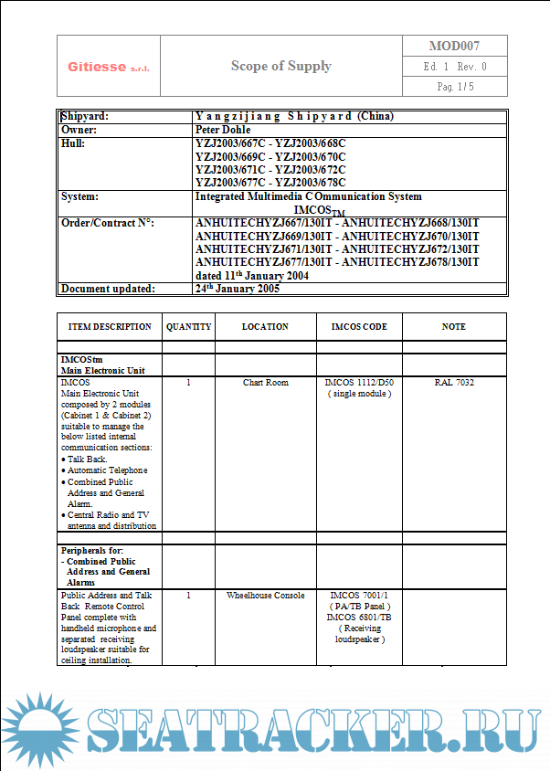 Year: 2005 Language: english Author: EATON Gitiesse Genre: Documentation Format: DOC, PDF, DWG Quality: eBook Pages count: ~200 Description: Final drawings & documents. IMCOS, manages the below listed internal communication sections: - Combined Public Address and General Alarm - Talk Back. - Automatic Telephones. - Aerial Radio/TV. - External Sound Reception.