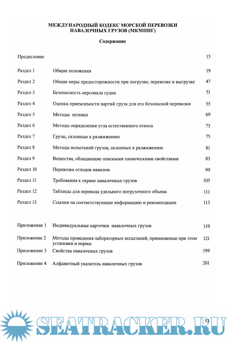 Год выпуска: 2012 Язык: Русский, Английский Автор: IMO Жанр: Конвенция (правила) Издательство: ЦНИИМФ Формат: PDF Качество: Изначально компьютерное (eBook) Количество страниц: 514+ 582 Описание: Настоящее издание представлено в двух книгах. Книга 1 содержит на английском и русском языках текст Международного кодекса морской перевозки навалочных грузов (МКМПНГ) с Приложениями 2 и 3. Текст Кодекса откорректирован резолюцией MSC.318(89) путем включения в него поправки 01-11 и дополнен следующими документами ИМО: Кодекс безопасной практики погрузки и разгрузки навалочных судов (Кодекс BLU); Руководство для представителей терминалов по погрузке и выгрузке навалочных грузов (Приложение к Кодексу BLU); Перечни навалочных грузов, для которых может быть изъято требование к установке стационарной системы газового пожаротушения или для которых стационарная система газового пожаротушения является недостаточно эффективной (циркуляр MSC/Circ.1395 от 15 июня 2011 года); Пересмотренные рекомендации по входу в закрытые помещения на судах (резолюция А.1057(27) от 30 ноября 2011 года); Рекомендации по безопасному использованию пестицидов на судах при фумигировании грузовых трюмов (циркуляр MSC.l/Circ.1264 от 27 мая 2008 года). Книга 2 содержит индивидуальные карточки навалочных грузов (Приложение 1 к МКМПНГ); алфавитный указатель навалочных грузов (Приложение 4 к МКМПНГ), содержащий все транспортные наименования навалочных грузов, которые введены в употребление и являются точными транспортными наименованиями, а также их синонимы. Доп. информация: В 2015 г. вышел Бюллетень изменений и дополнений № 1 Огромное спасибо за помощь пользователю Helepost!