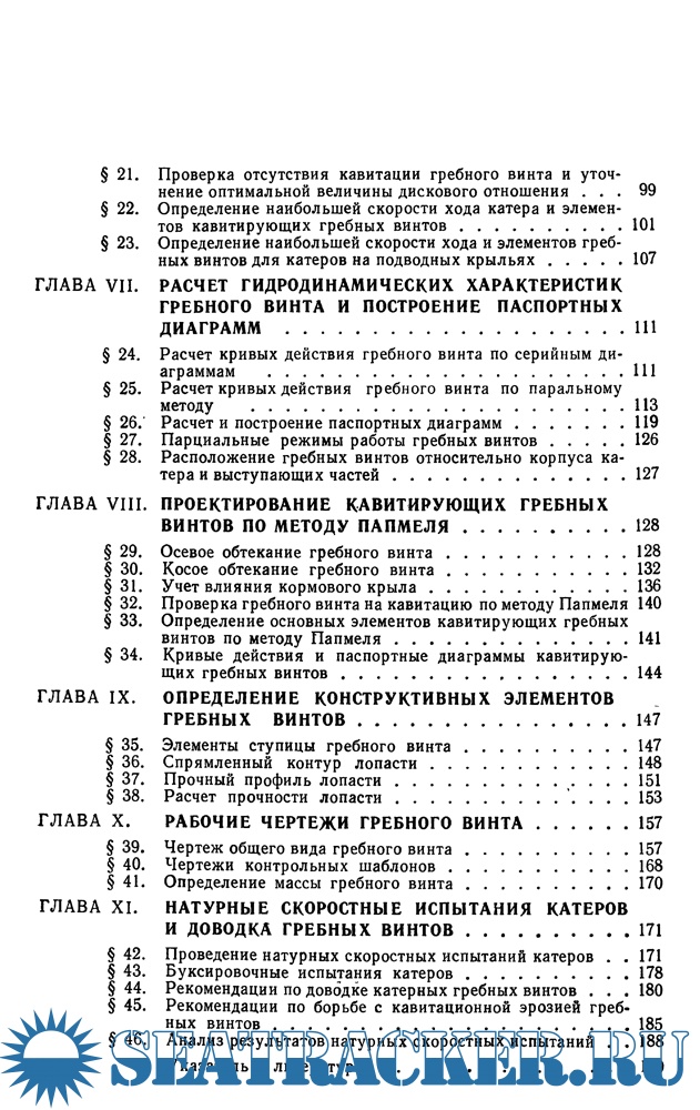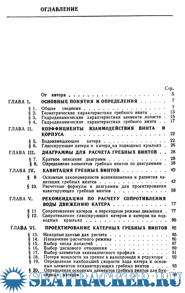 Обобщен опыт проектирования гребных винтов для катеров различной быстроходности, в том числе глиссирующих катеров и катеров на подводных крыльях. Систематически изложены практические методы выполнения расчетов ходкости и определения основных гидродинамических и конструктивных элементов некавитирующих и кавитирующих гребных винтов при их осевом и косом обтекании. Подробно рассмотрен новый оригинальный метод проектирования кавитирующих гребных винтов и расчета их кавитационных характеристик на различных режимах работы. Освещены вопросы проведения натурных скоростных испытаний катеров, даны рекомендации по анализу результатов испытаний и доводке гребных винтов. Рассчитана на инженерно-технических работников проектно-конструкторских бюро и заводов, студентов кораблестроительных специальностей и многочисленных любителей водно-моторного спорта.