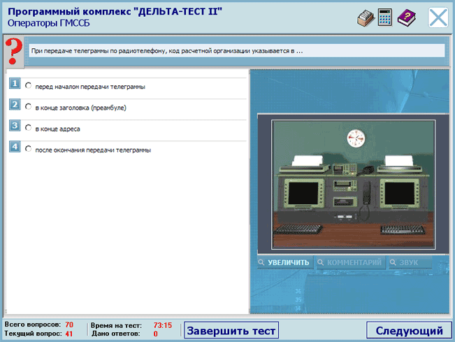 в Морских УТЦ ГМССБ в качестве элемента квалификационного экзамена, для проведения входного тестирования по программам переподготовки радиоспециалистов ГМССБ, для обеспечения контроля за подготовкой слушателей в процессе проведения занятий
