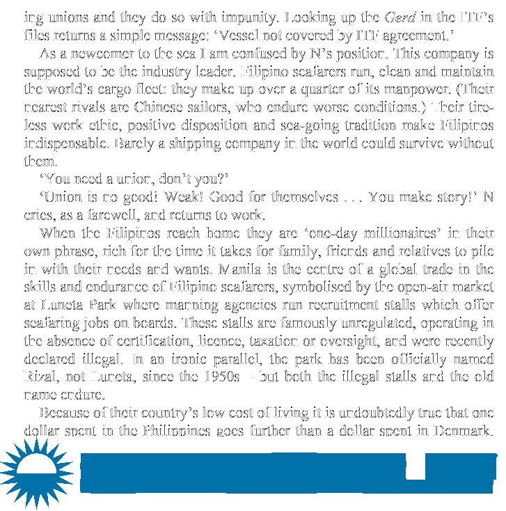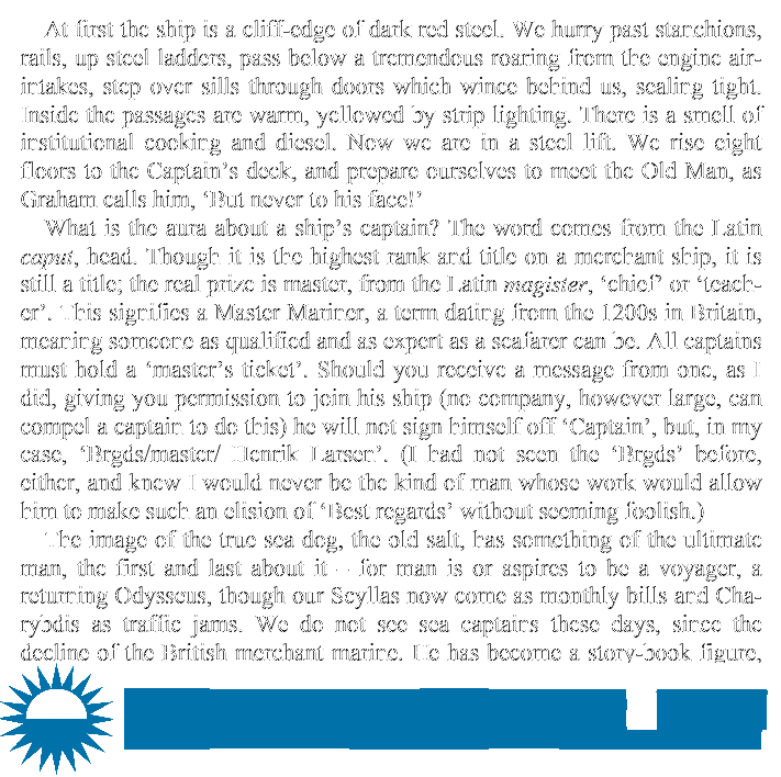 , providing an overview and critique of the shipping industry and its treatment of seafarers in the early 21st century. Similar to George, Clare compares the conditions on container ships in 2011-12 to the recent past but offers no solutions to problems he identifies.