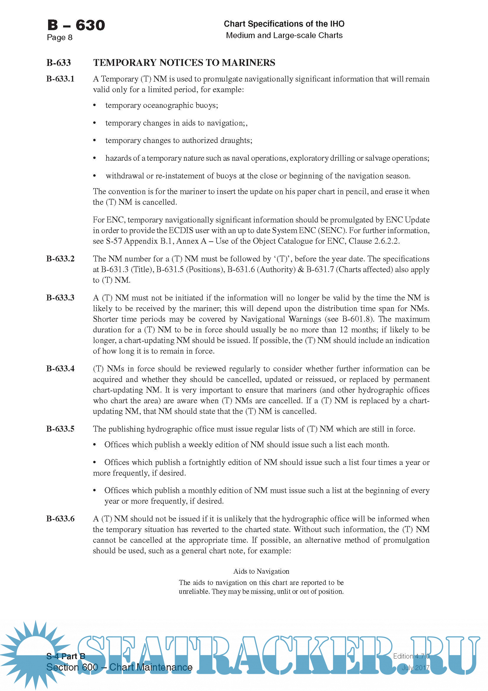Regulations of the IHO for International (INT) Charts And Chart Specifications Of The IHO Edition 4.7.0