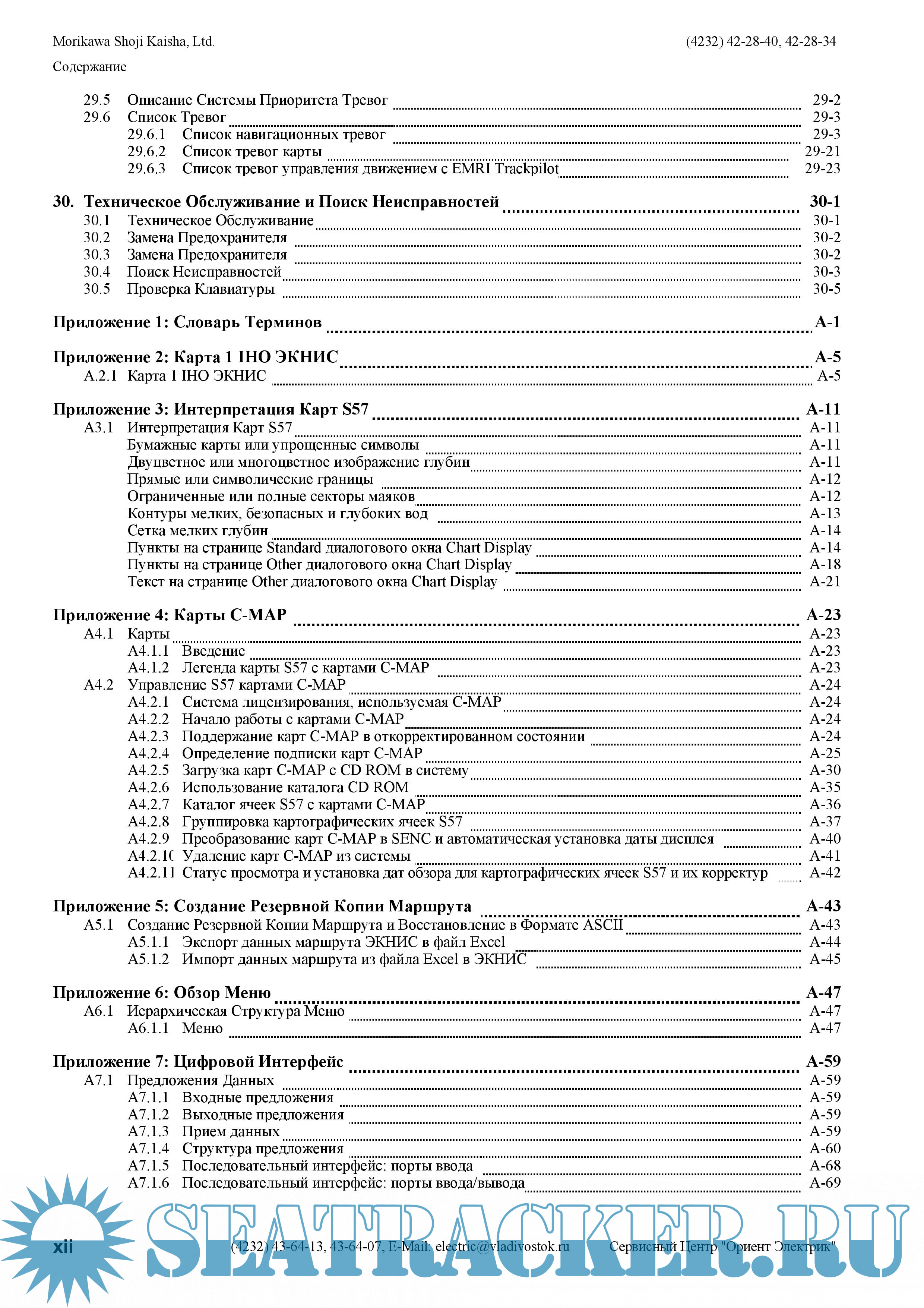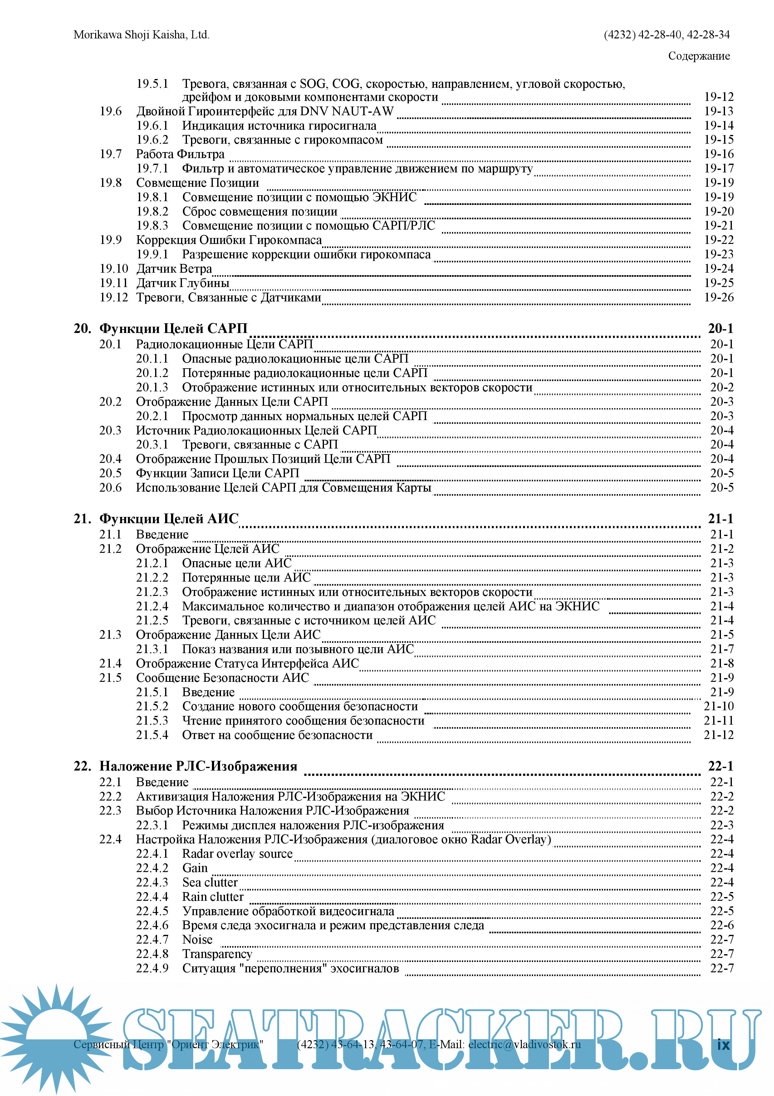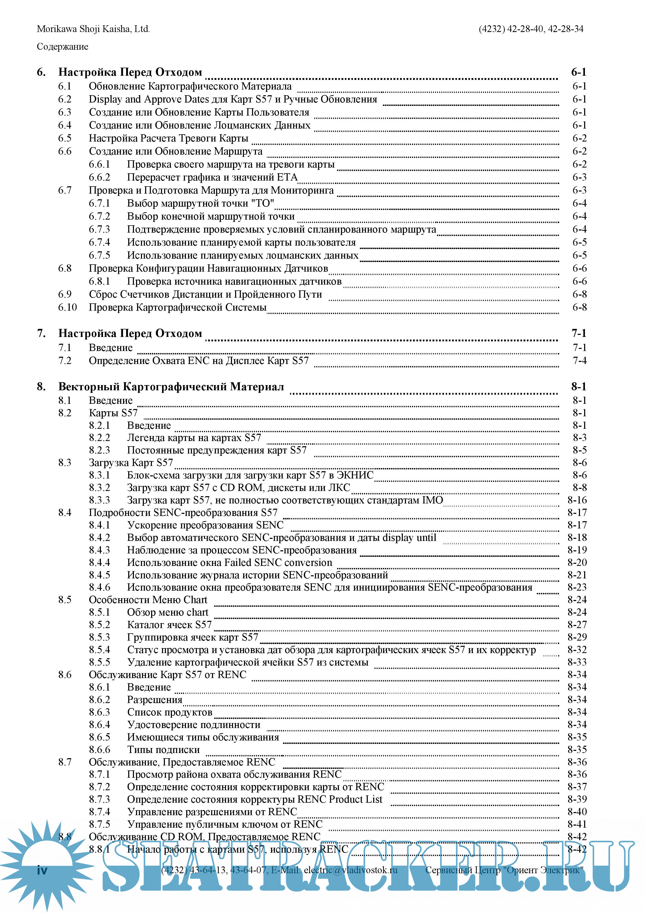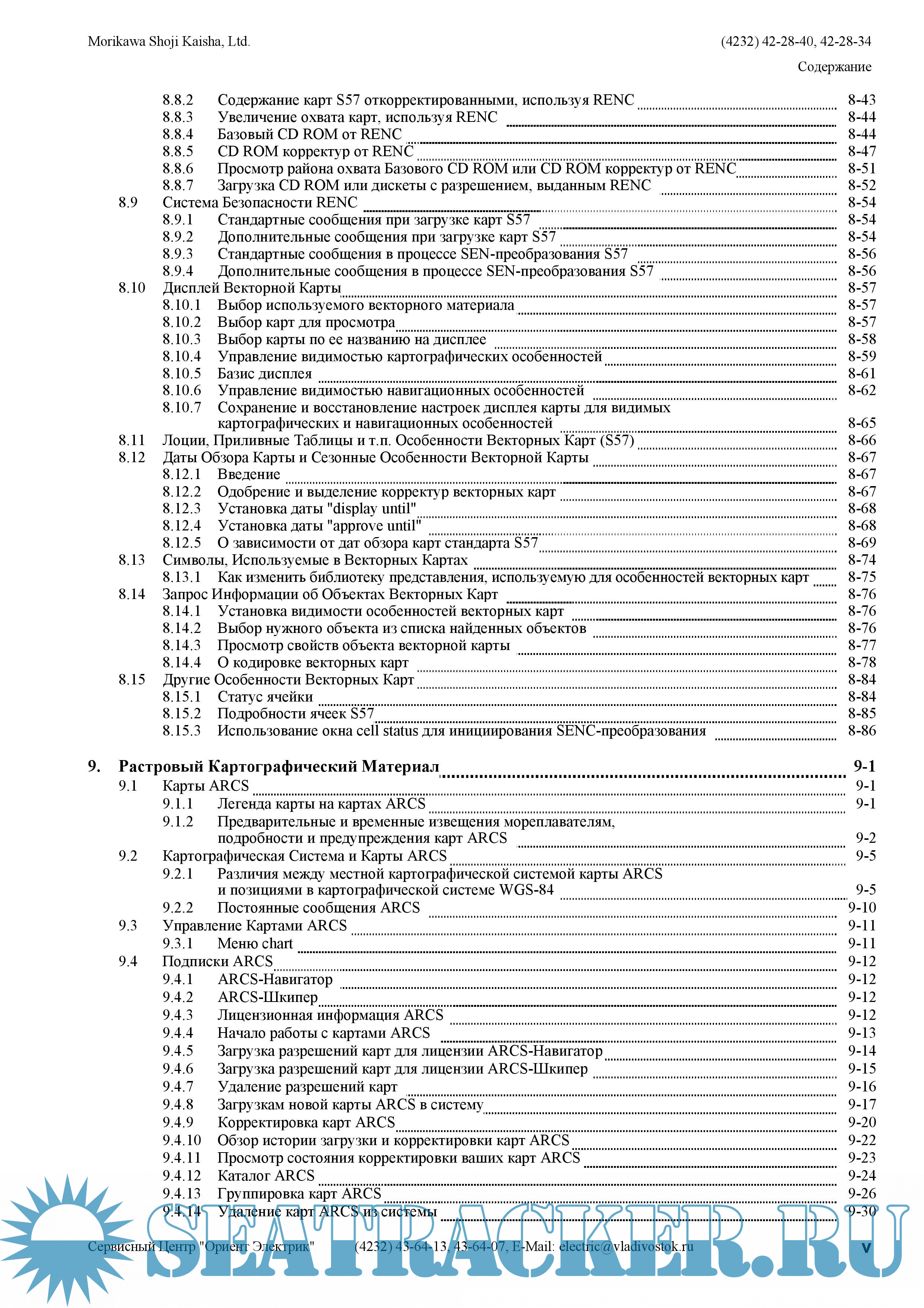 Год выпуска: 2004 Язык: русский Автор: Furuno Жанр: Руководство Формат: PDF Качество: Изначально компьютерное (eBook) Количество страниц: 582 Описание: ЭКНИС серииFEA-2107 – это продукт огромного опыта фирмыFURUNO в области компьютерной технологии и морской электроники. Он отвечает требованиям РезолюцииIMO A.817(9), IEC 61174 и другим соответствующим стандартам. ЭКНИС отображает электронные карты, навигационные линии, данные САРП, цели АИС и другие навигационные данные на дисплее с высоким разрешением размером20.1 дюйма(FEA-2107) или23.1 дюйма(FEA-2807). FEA-2107-BB поставляется без монитора, позволяя вам использовать покупной монитор по своему выбору. Основные особенности ЭКНИС следующие • Непрерывный мониторинг позиции судна через обработку многоканальным фильтром Кальмана с использованиемGPS, DPGS, SDME (морское оборудование измерения скорости и пройденного расстояния) • Функции предварительной прокладки(планирования) и мониторинга маршрута • Широкий спектр функций предупреждения, обеспечивающих более безопасную и эффективную навигацию • Возможность наложения радиолокационного изображения на электронные карты(факультативная) • Предупреждения о возможности посадки на мель, безопасные изобаты • Картографическая база данных, загружаемая и обновляемая при помощиCD ROM • Данные цели от РЛС/САРП и транспондера АИС, помогающие избежать столкновение. (Транспондер АИС и САРП) Настоящее руководство приводит следующую информацию: • Конфигурация системы • Интерпретация экрана и использование блока управления • Подготовка к выходу в рейс • Правила замены бумажных карт электронными • Управление картографическим материалом • Ручные обновления, которые используются для ручного ввода Извещений мореплавателям и предупреждений Navtex • Расчет картографических тревог • Предварительная прокладка(планирование) и мониторинг маршрута • Различные инструменты пользователя, такие как карты пользователя, лоцманские данные и навигационные инструменты • Операции по созданию резервных копий • Общая Справочная Система • Использование навигационных датчиков • Использование целей САРП • Использование целей АИС • Наложение радиолокационного изображения • Различные функции записи • Обязательная информация о принятой системе координат, используемой картами и ЭКНИС • Операции, связанные с управлением судном • Список тревог
