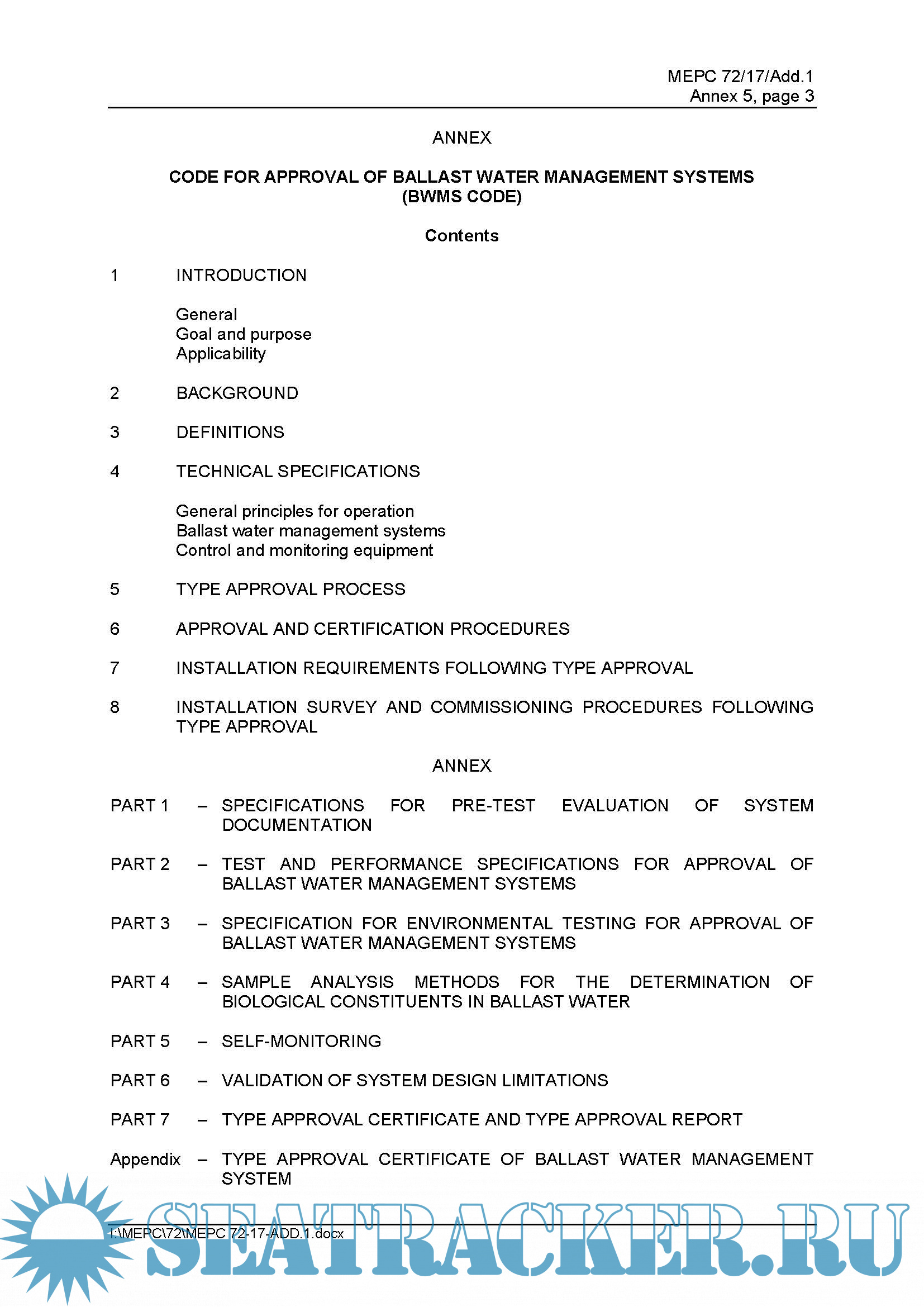 Code For Approval Of Ballast Water Management Systems (BWMS CODE)