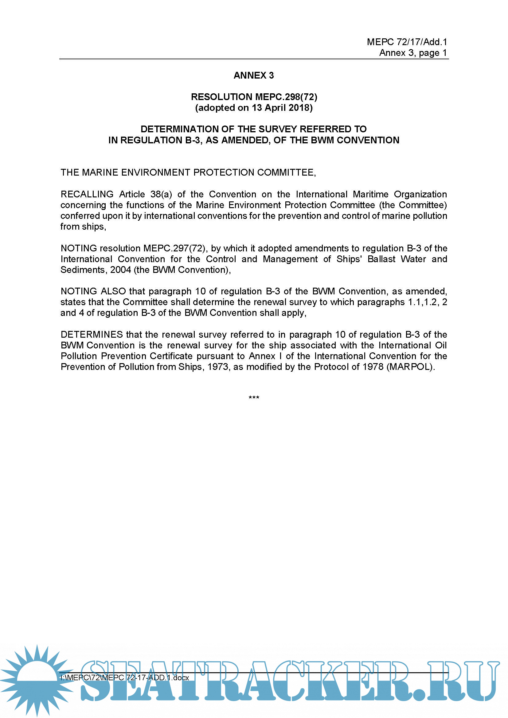 RESOLUTION MEPC.298(72) (adopted on 13 April 2018) and