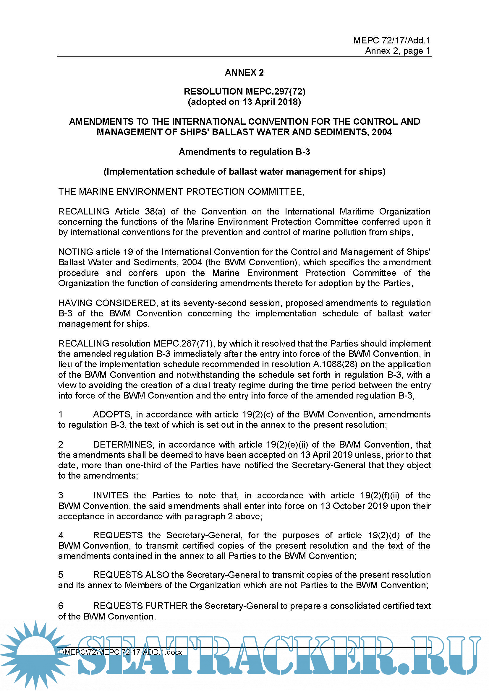 RESOLUTION MEPC.297(72) (adopted on 13 April 2018)