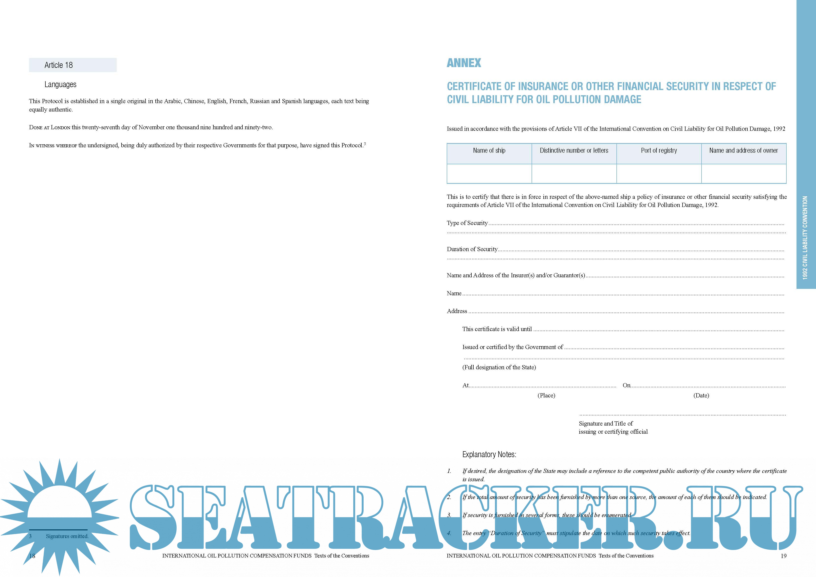 Liability and compensation for oil pollution damage Texts of the 1992 Civil Liability Convention, the 1992 Fund Convention and the Supplementary Fund Protocol, 2018 Edition