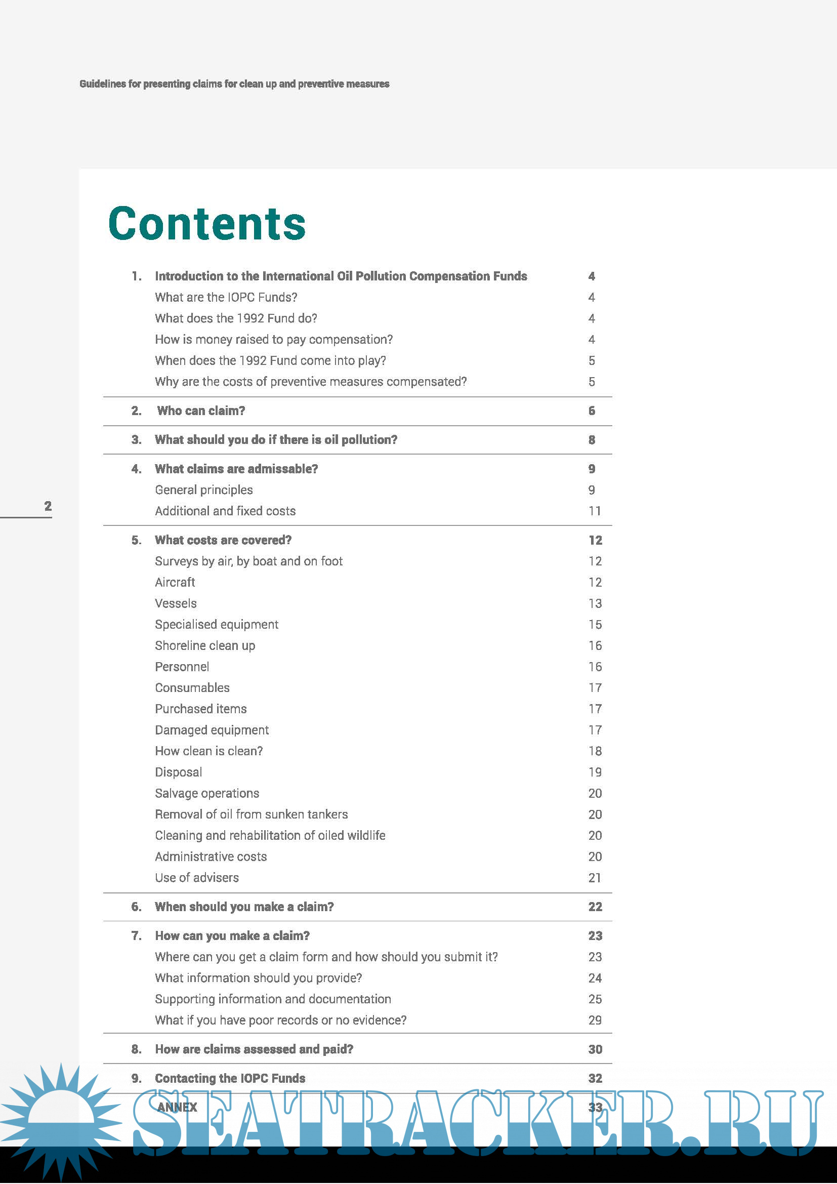 Year: 2018 Language: english Author: International Oil Pollution Compensation (IOPC) Funds Genre: Guide Format: PDF Quality: eBook Pages count: 21 Description: Anybody who has incurred costs in taking reasonable measures to minimise or prevent pollution damage in a Member State can make a claim to recover those costs, wherever those measures are taken. For example, if a State that is not Party to the Conventions responded to a spill on the high seas or within its own territorial waters in order to prevent or reduce pollution damage within a Member State,the cost of the response would in principle be admissible for compensation.