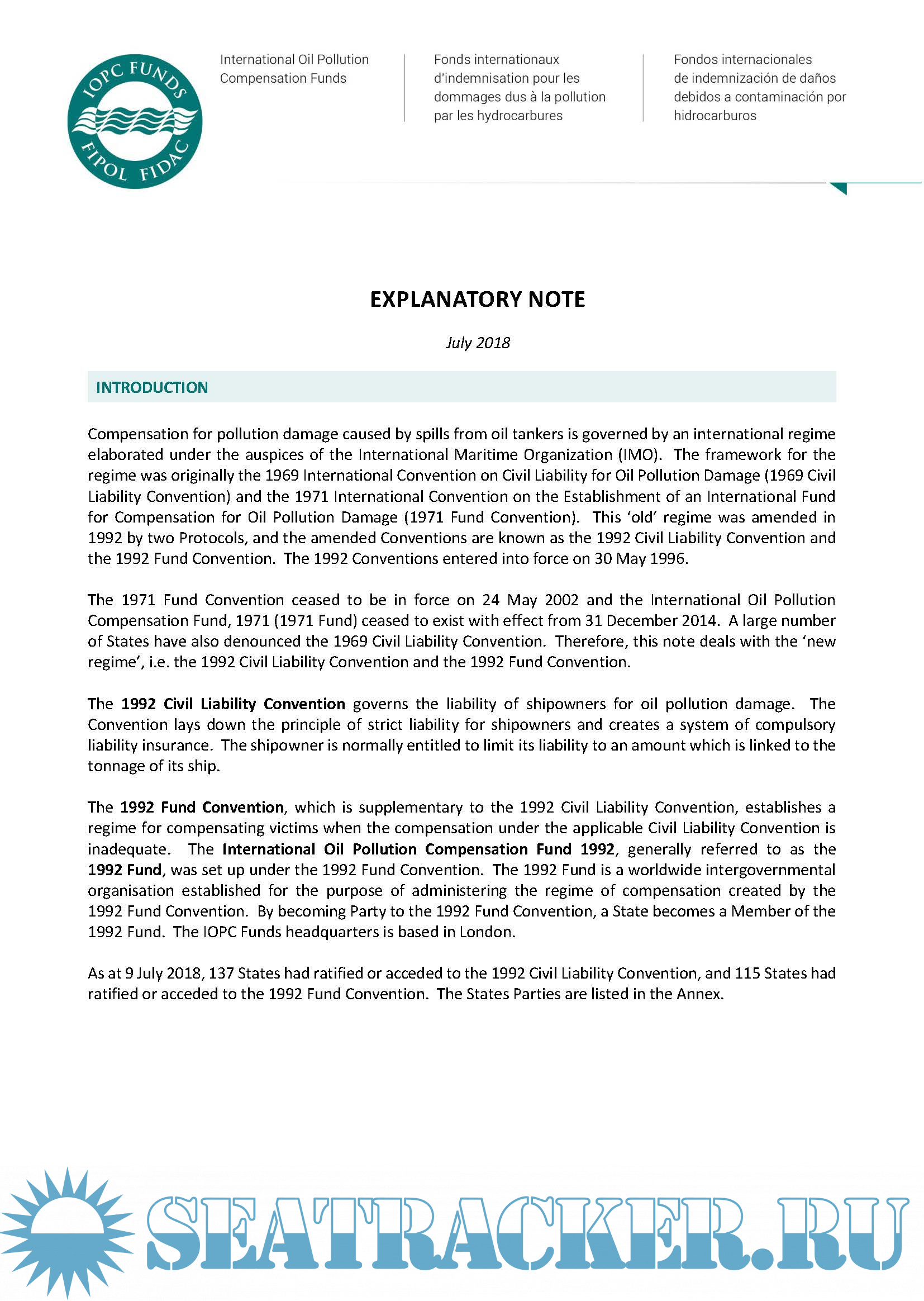 STOPIA & TOPIA 2006 (AS AMENDED 2017) with 2018 IOPC Funds Explanatory Note