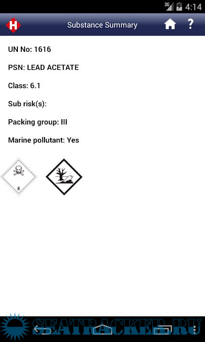Based on the Hazcheck Systems produced by Exis Technologies this App provides a quick reference tool for those involved in the transport and handling of dangerous goods by sea. It provides a simple interactive user interface for checking any entry in the IMDG Code DGL or substance index. Type in the UN Number or initial letters of a chemical name referenced in the IMDG Code and this application will provide you with details on class, sub-risk (as applicable), packing group, identify if the substance is deemed to be a marine pollutant and show the applicable labels.