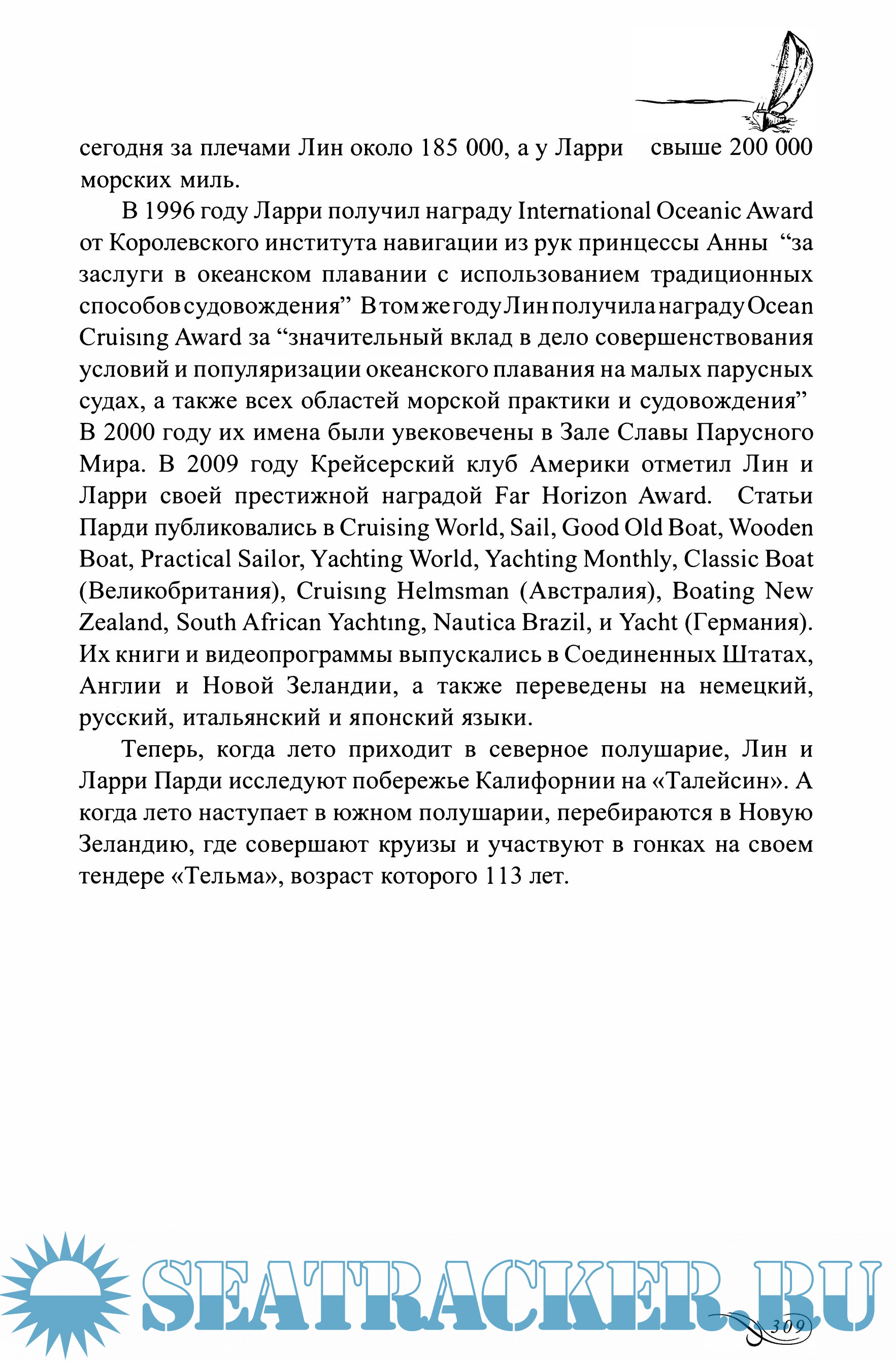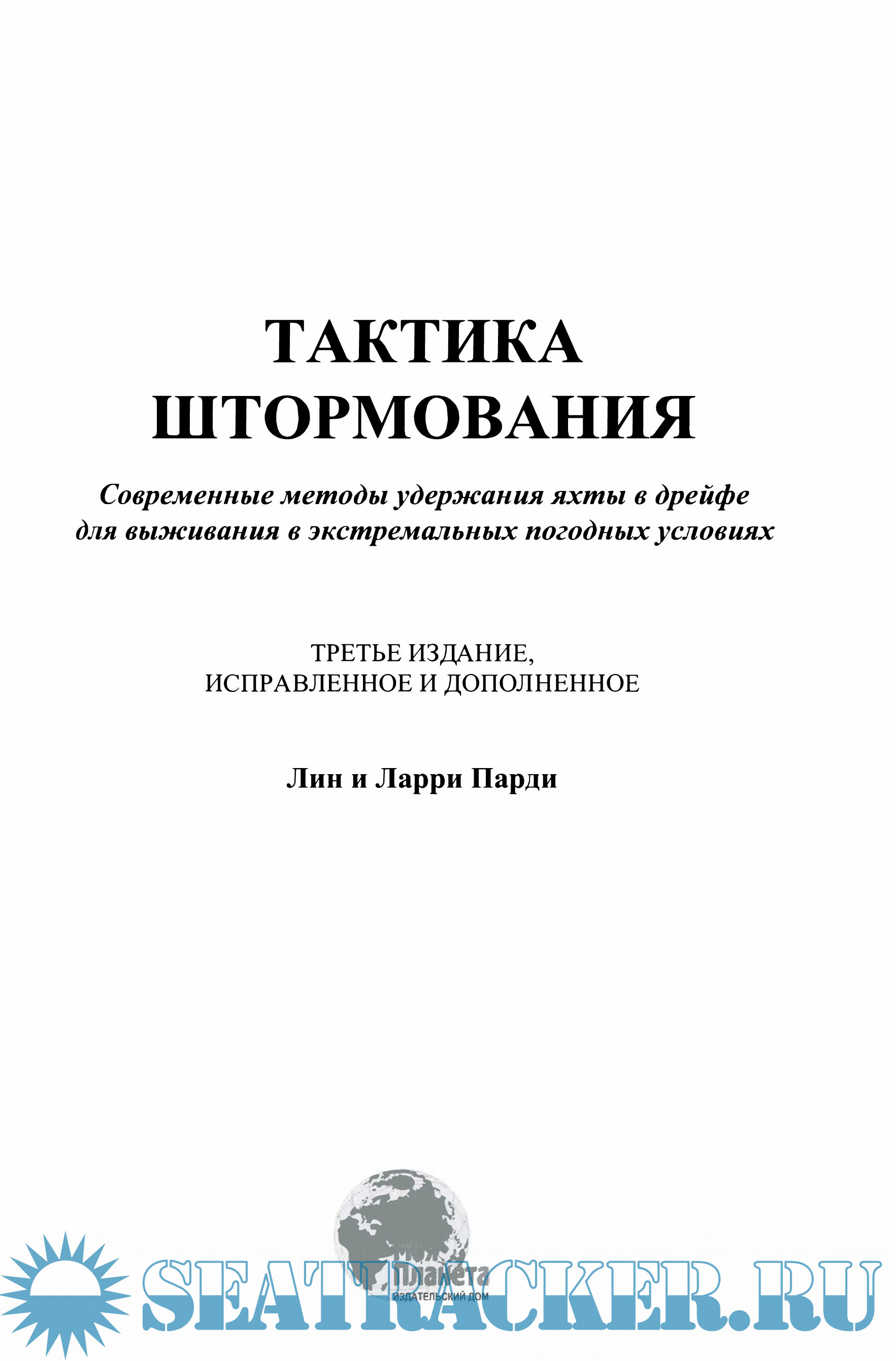 Год выпуска: 2012 Язык: русский Автор: Парди Лин, Парди Ларри Жанр: Практическое пособие Издательство: М. ИД «Моя планета» Издание: ТРЕТЬЕ ИЗДАНИЕ, ИСПРАВЛЕННОЕ И ДОПОЛНЕННОЕ ISBN: 978-5-905445-03-3 Формат: PDF Качество: Распознанный текст без ошибок (OCR) Количество страниц: 319 Описание: Практическое пособие, в котором изложены тактические приемы штормованиия, выработанные авторами в течение более четырех десятилетий совместного плавания, многократно опробованные и отшлифованные на протяжении нескольких кругосветок и перегонов более двадцати судов, а также испытанные при прохождении четырех великих южных мысов, включая легендарный Мыс Горн. Доп. информация: DVD с видеоматериалом от Лин и Ларри Парди по подготовке судна ко встрече со штормом и практическому использованию приемов штормования, описанных в книге (продолжительность - 74 мин., на двух языках: русс./англ.) доступен по ссылке https://seatracker.me/viewtopic.php?t=23045